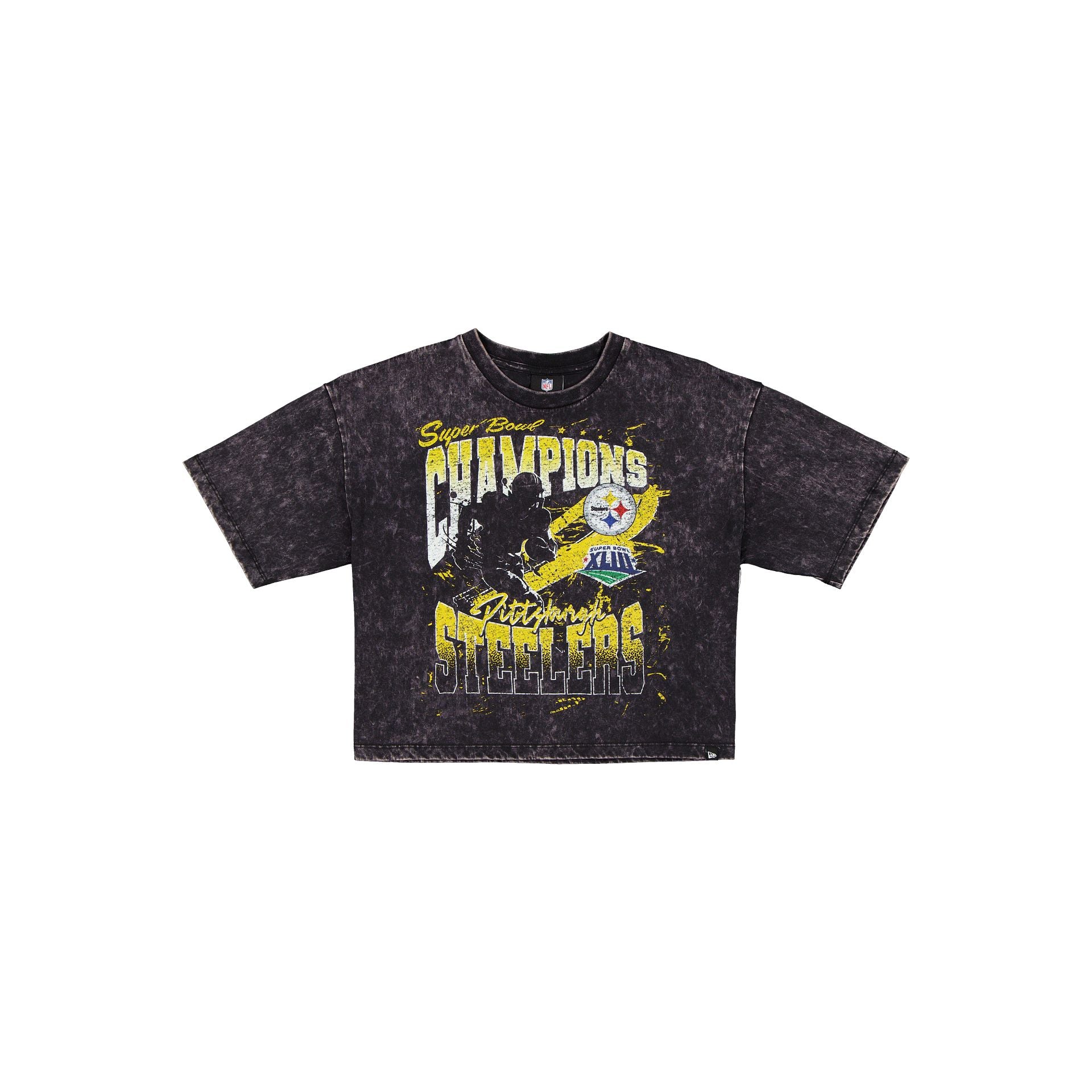 The Pittsburgh Steelers Sport Classics Women’s Cropped T-Shirt features a screen-printed Steelers graphic at the front.