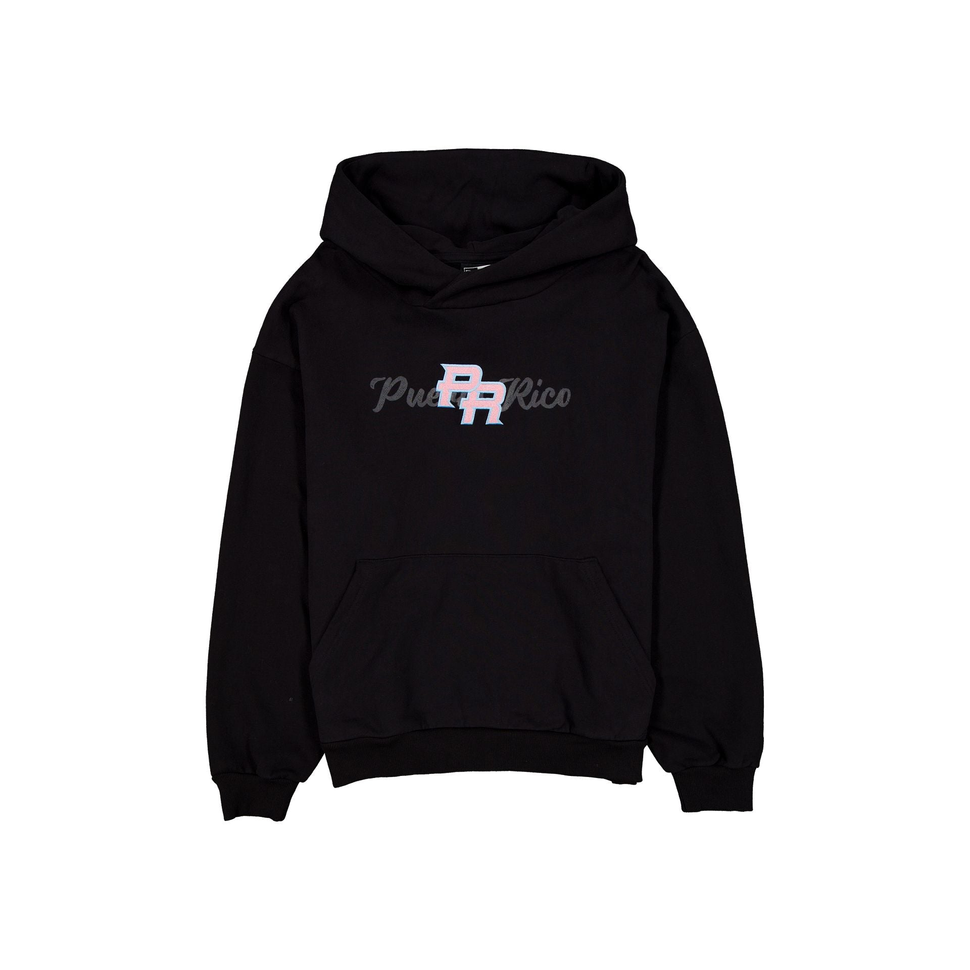 The Puerto Rico Hoodie features an embroidered PR logo over a screen-printed monochromatic team wordmark at the chest and a matching team logo at the rear.