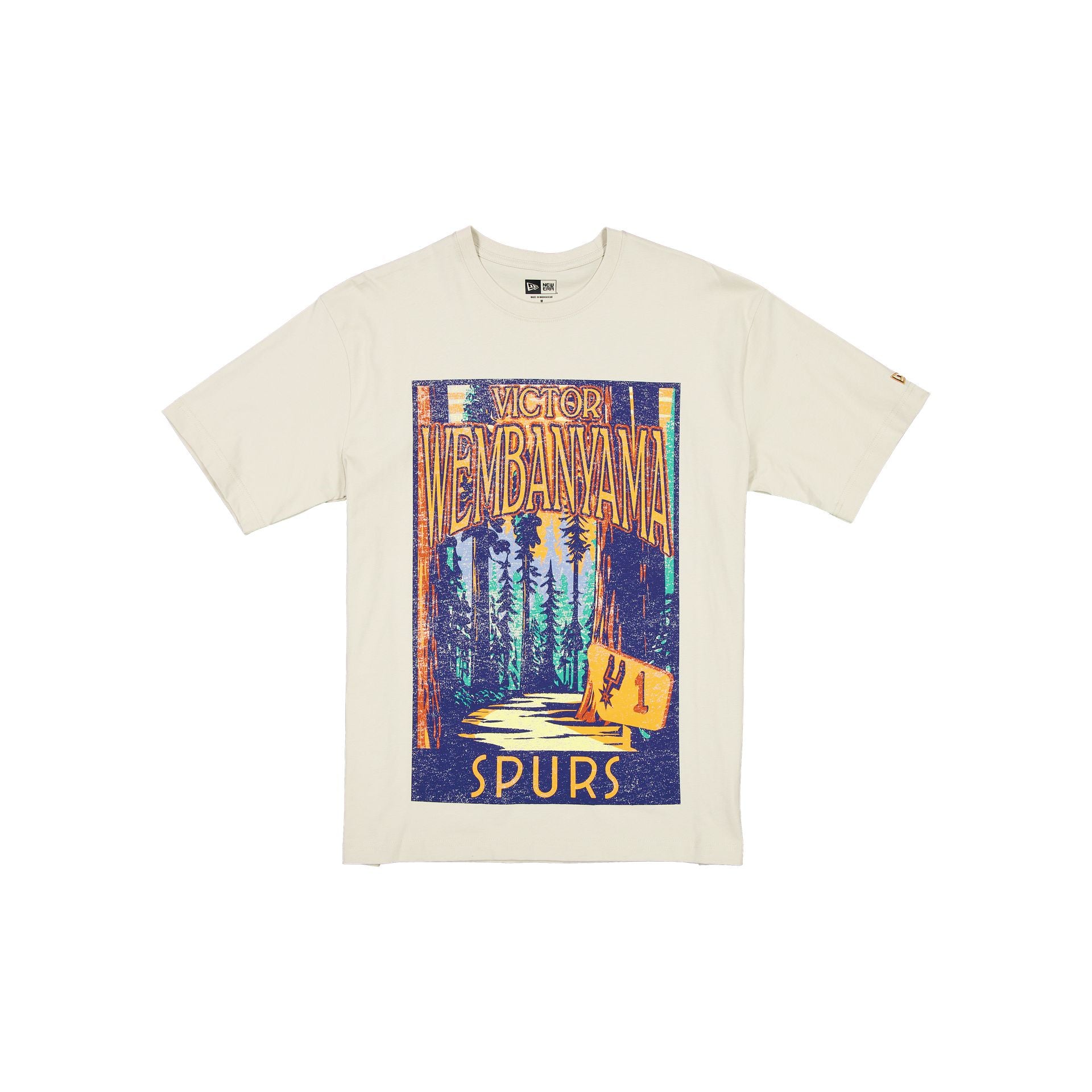 The San Antonio Spurs 2025 All-Star Game Victory Grove Stone T-Shirt features a screen-printed Spurs player name and number at the front.