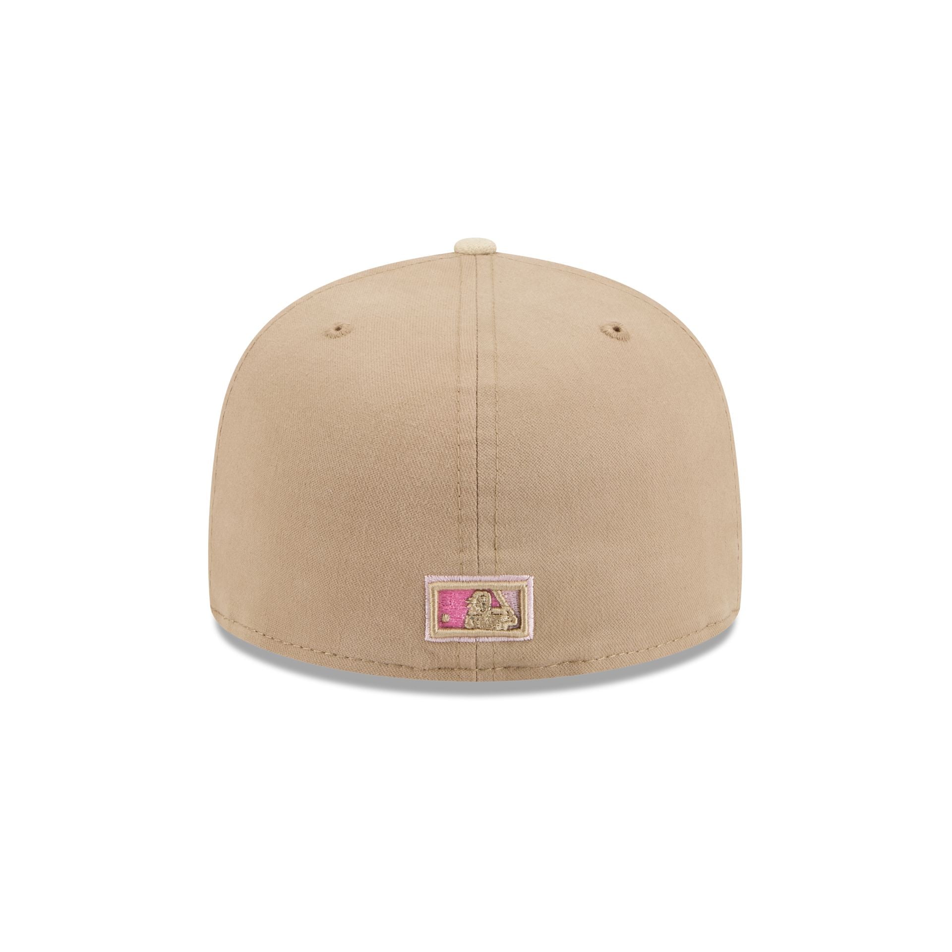 The Seattle Mariners Hand Stitched Floral 59FIFTY Fitted Cap features an embroidered Mariners pink Cooperstown logo at the front panels with a matching MLB Batterman logo at the rear. Additional details include a flower embroidery at the visor and a gray undervisor.