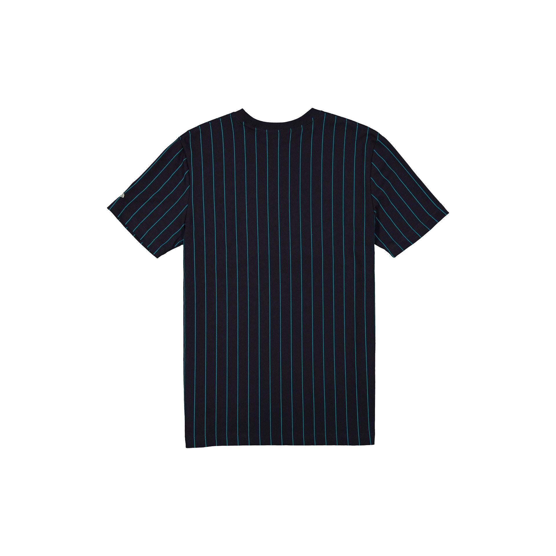 The Seattle Mariners Throwback Retro Pinstripe T-Shirt features an embroidered Mariners wordmark at the front with a twill applique logo at the left chest.