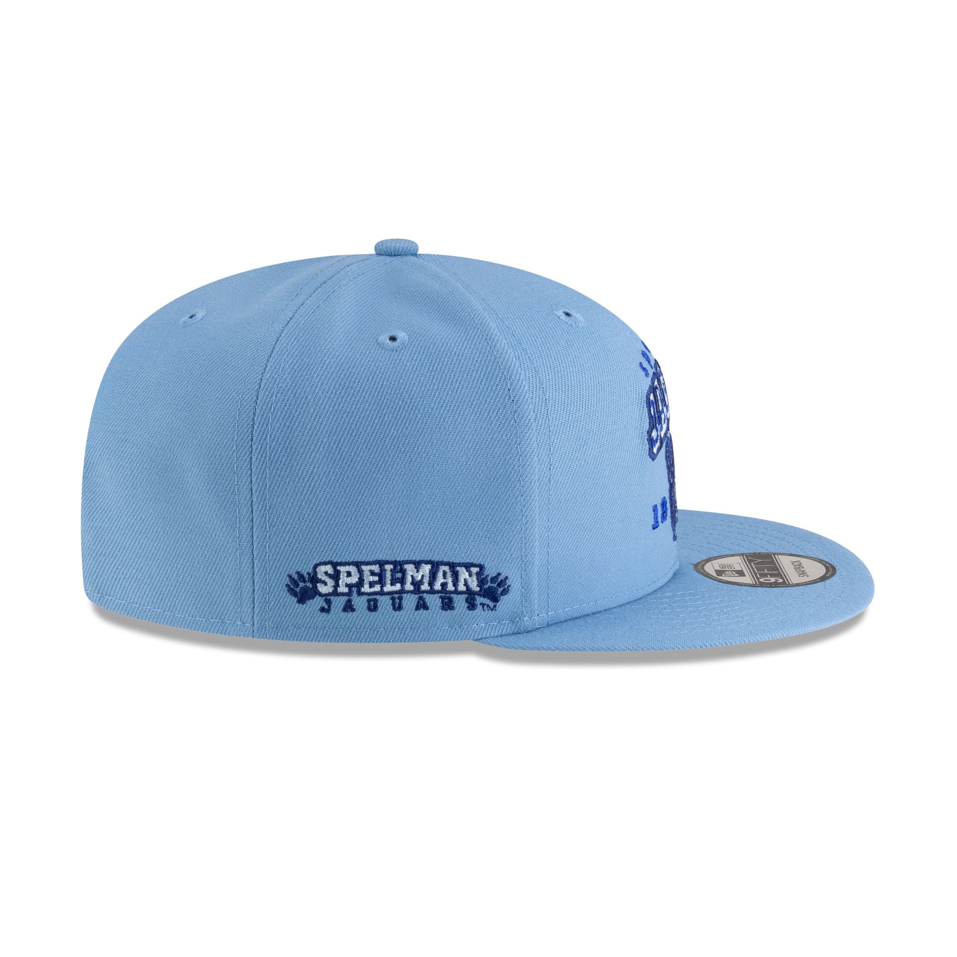 The Spelman Jaguars Sky Blue 9FIFTY Snapback Cap features an embroidered Jaguars logo at the front panels with a team wordmark at the right-wear side. a snapback closure at the rear. and a gray undervisor.