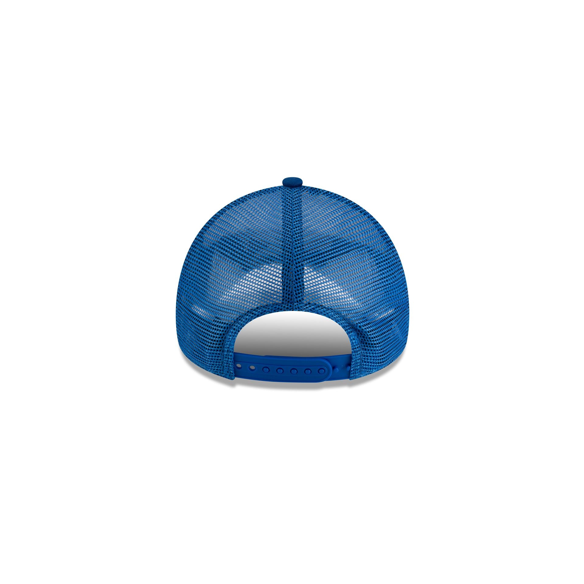 The Superman Kids Blue 9FORTY A-Frame Trucker features a screen-printed Superman graphic at the front panels against a plush fabrication. Additional details include a mesh back and a snapback closure at the rear.