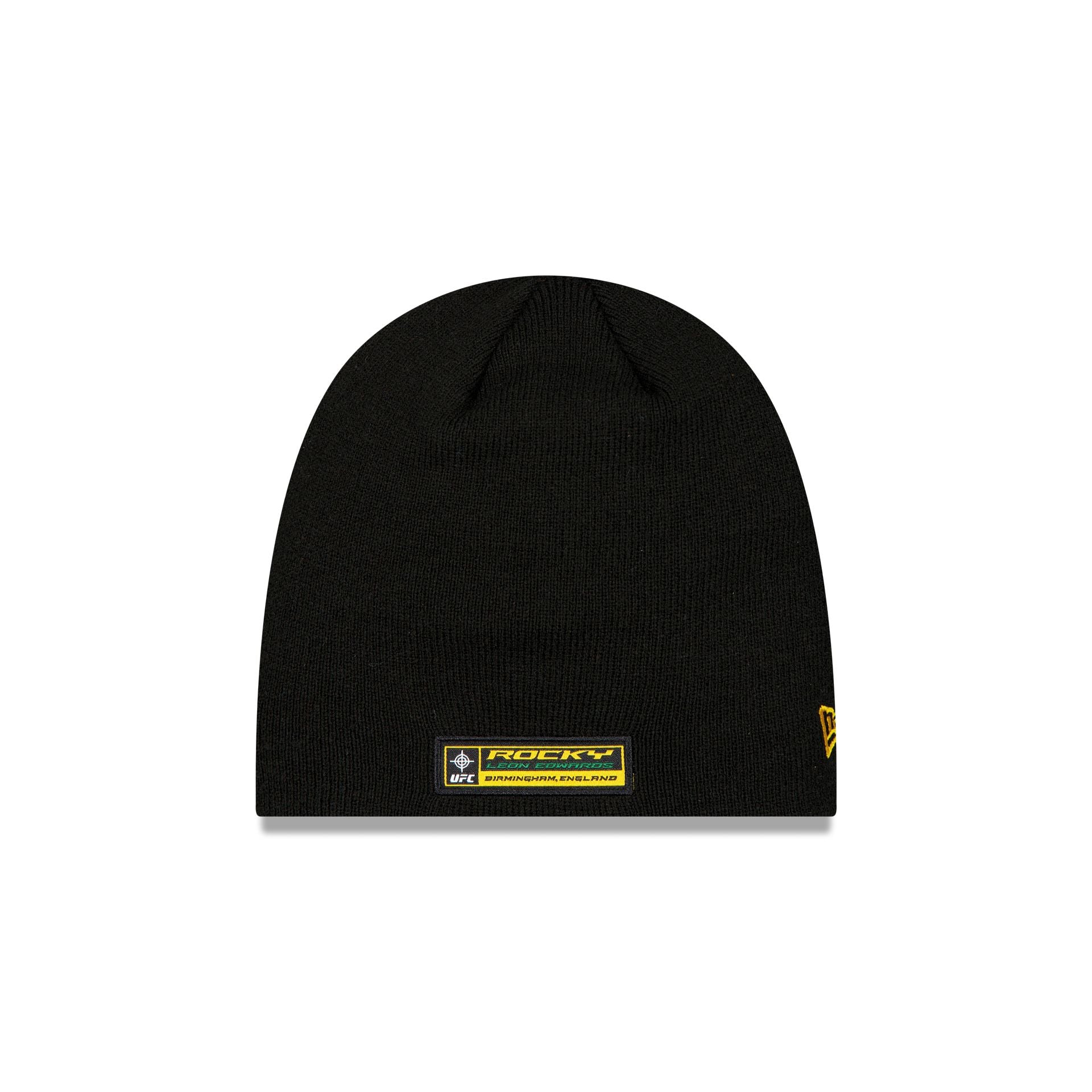 The UFC Leon Edwards Skull Knit Hat features a woven Leon Edwards UFC patch at the front with an embroidered patch at the right-wear side.