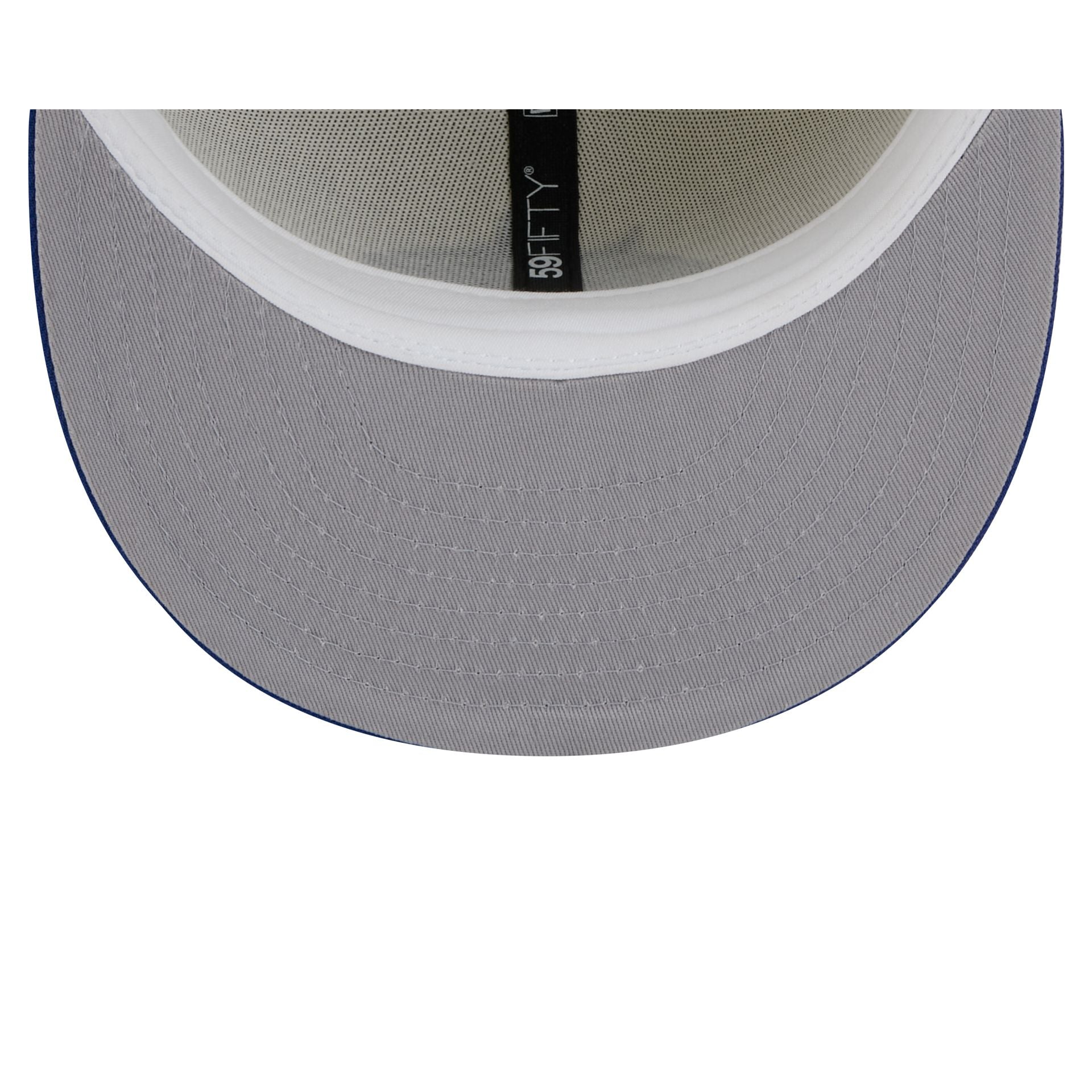 The Vancouver Canucks Chrome White 59FIFTY Fitted Cap features an embroidered Canucks logo at the front panels with a matching NHL Shield at the rear and a gray undervisor.