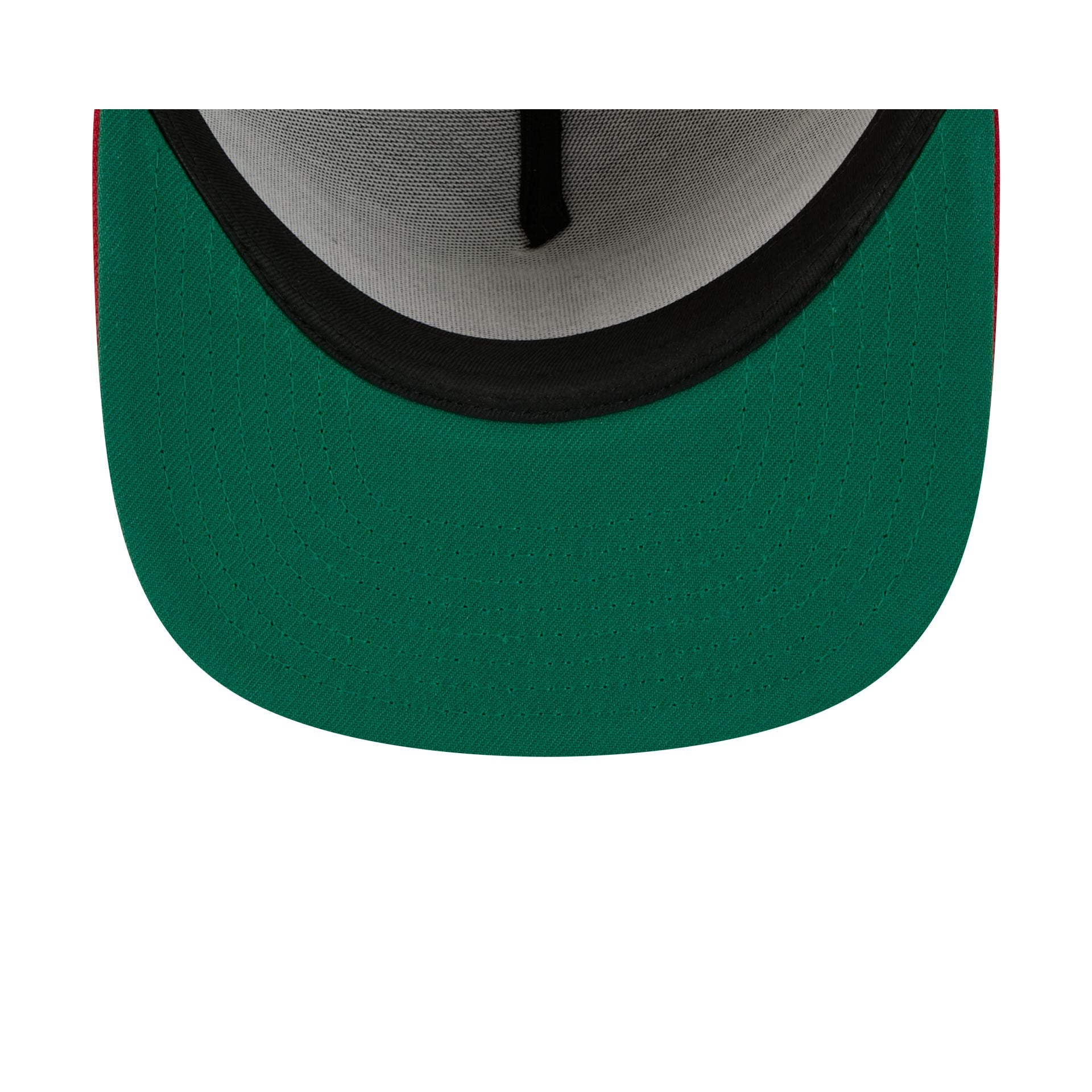 The Atlanta Braves Summer Derby 59FIFTY A-Frame Fitted Cap features an embroidered Braves wordmark over team color stripes at the front panels with a matching MLB Batterman logo at the rear. Additional details include a 2000 All-Star Game patch at the right-wear side. a red visor. and a green undervisor.