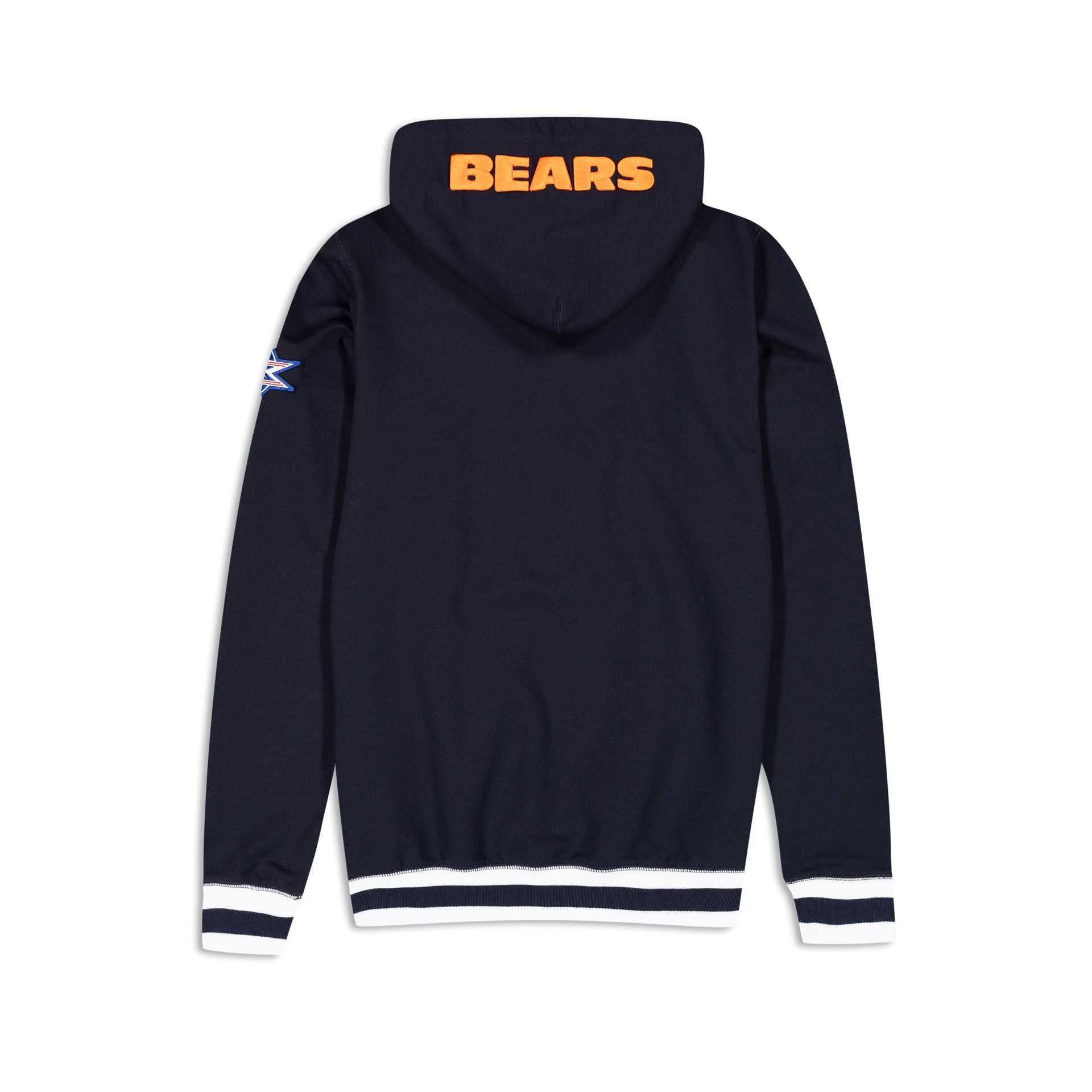 The Chicago Bears Logo Select Hoodie features a chenille applique Bears logo at the left chest with team patches at each sleeve and an embroidered team wordmark at the rear.