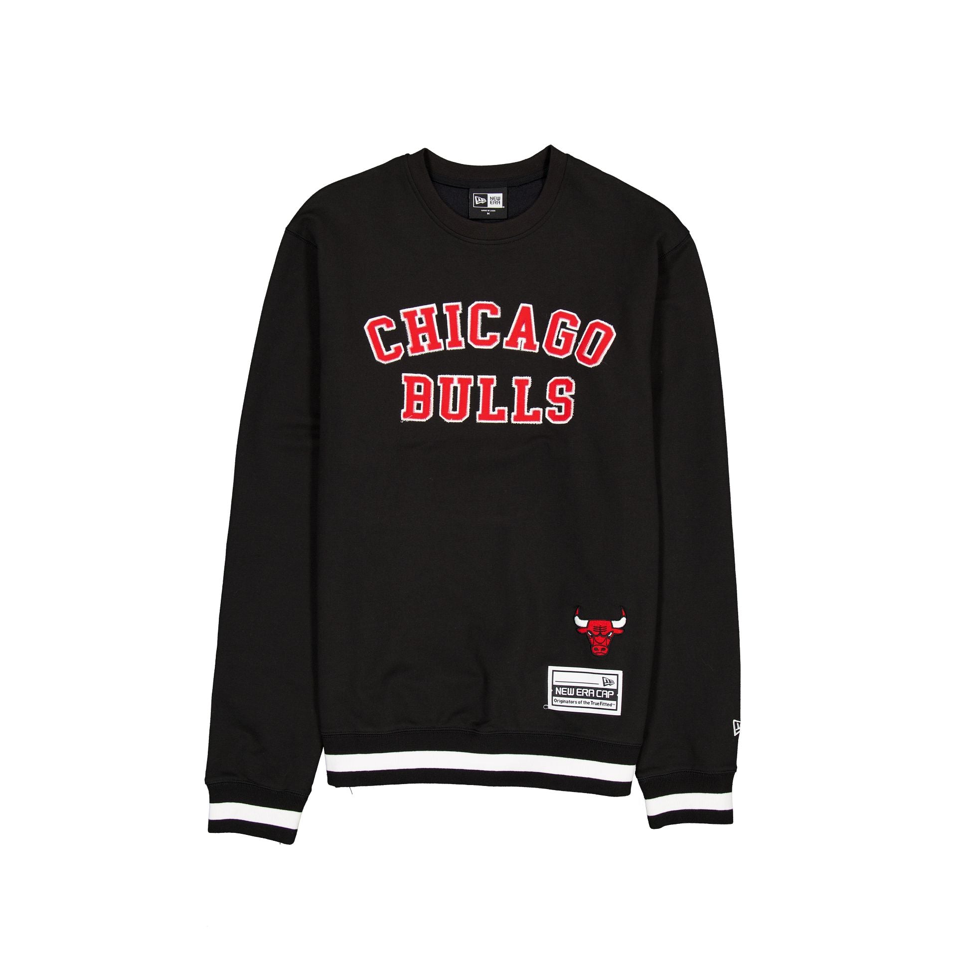 The Chicago Bulls Team Color Logo Select Crewneck features a zig zag stitched twill applique Bulls wordmark at the chest with an embroidered team logo above a New Era Cap jock tag at the left hip.