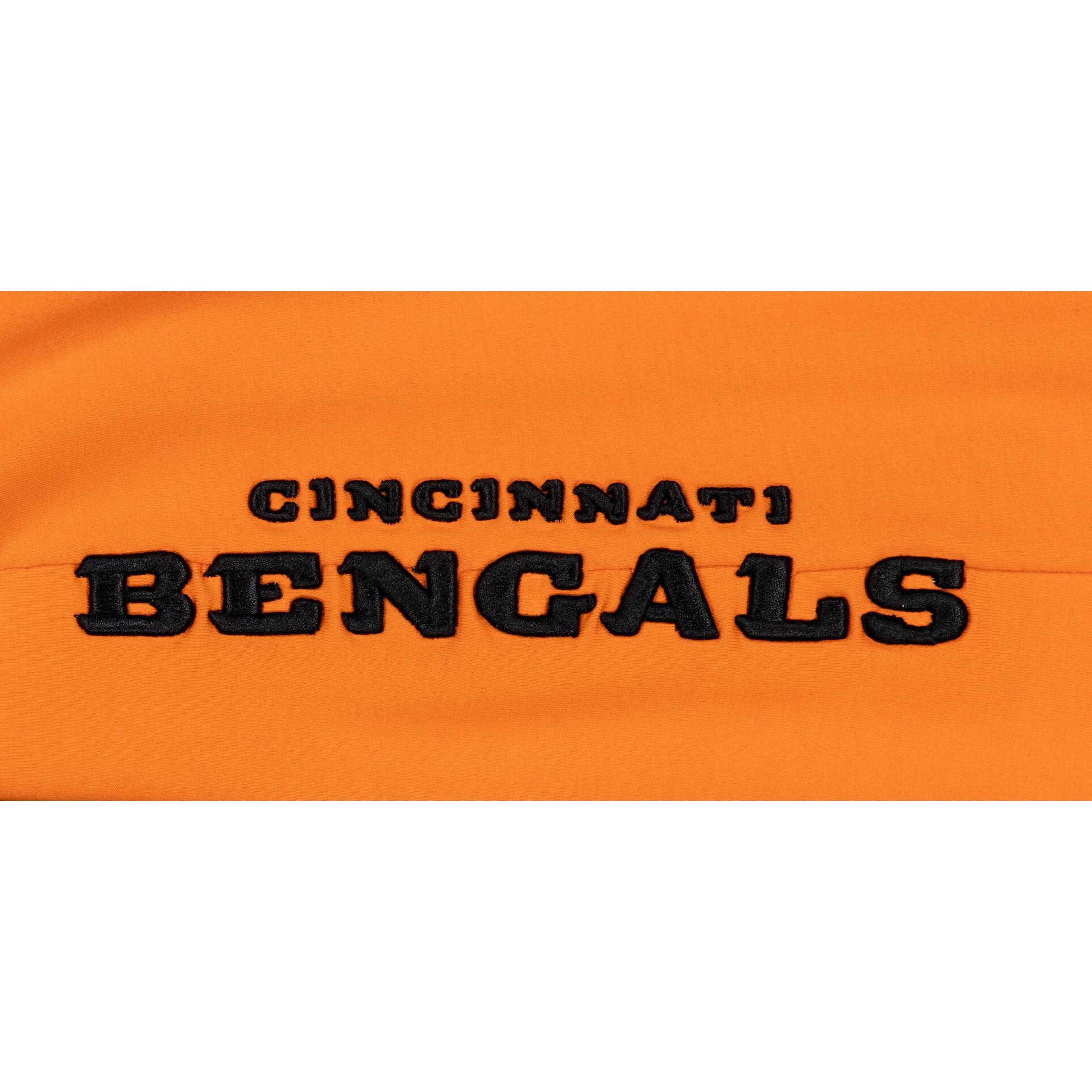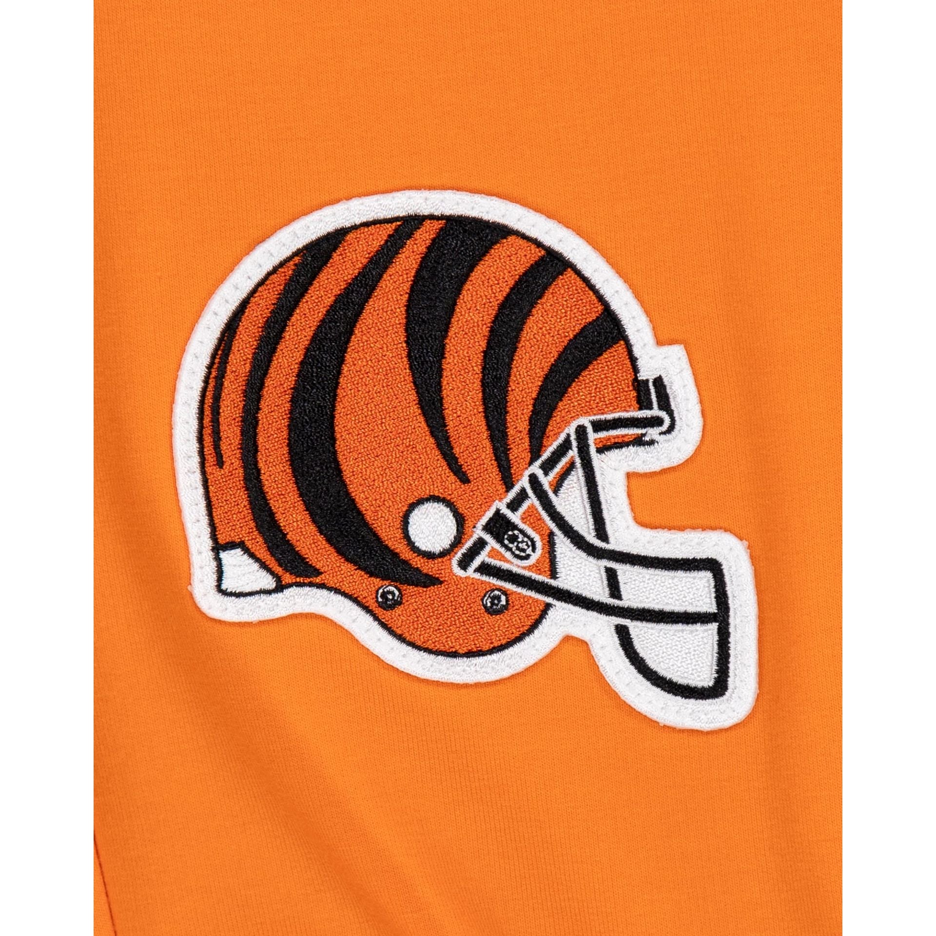 The Cincinnati Bengals Logo Select Jogger features a chenille applique Bengals logo and embroidered wordmark at the left leg with an alternate team logo at the right ankle.