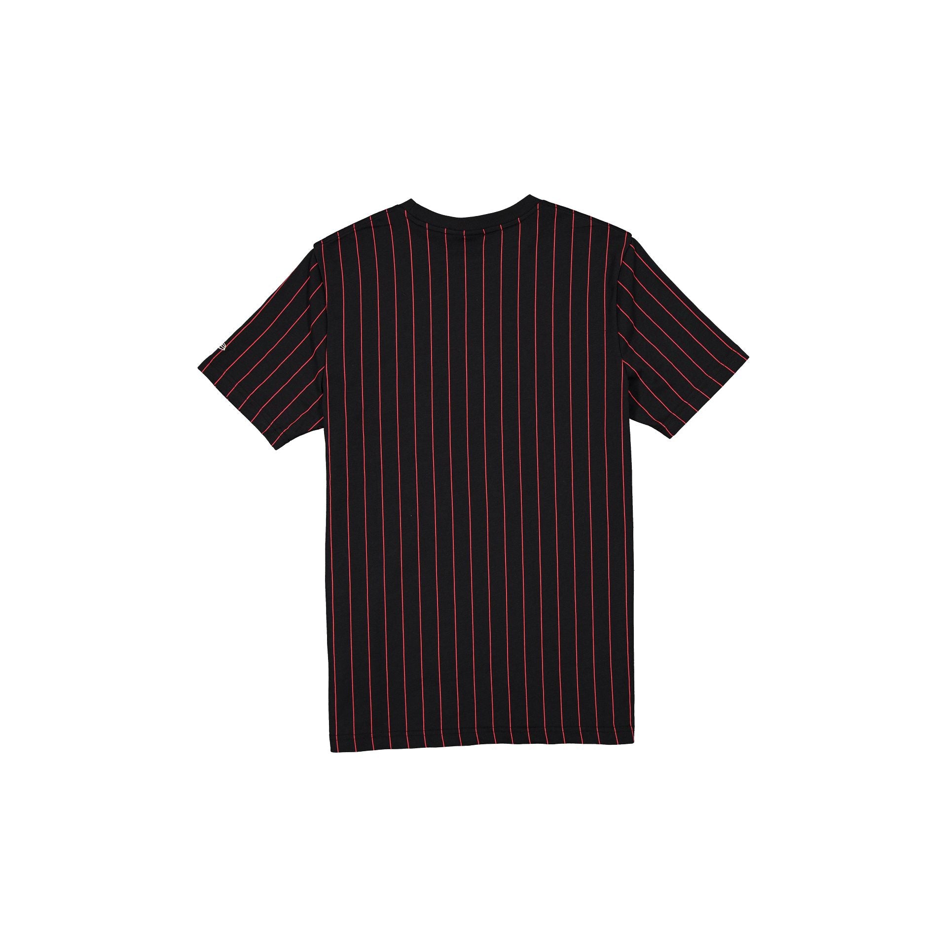 The Cincinnati Reds Throwback Pinstripe T-Shirt features an embroidered Reds logo and wordmark at the front with a New Era jock tag at the left hip.