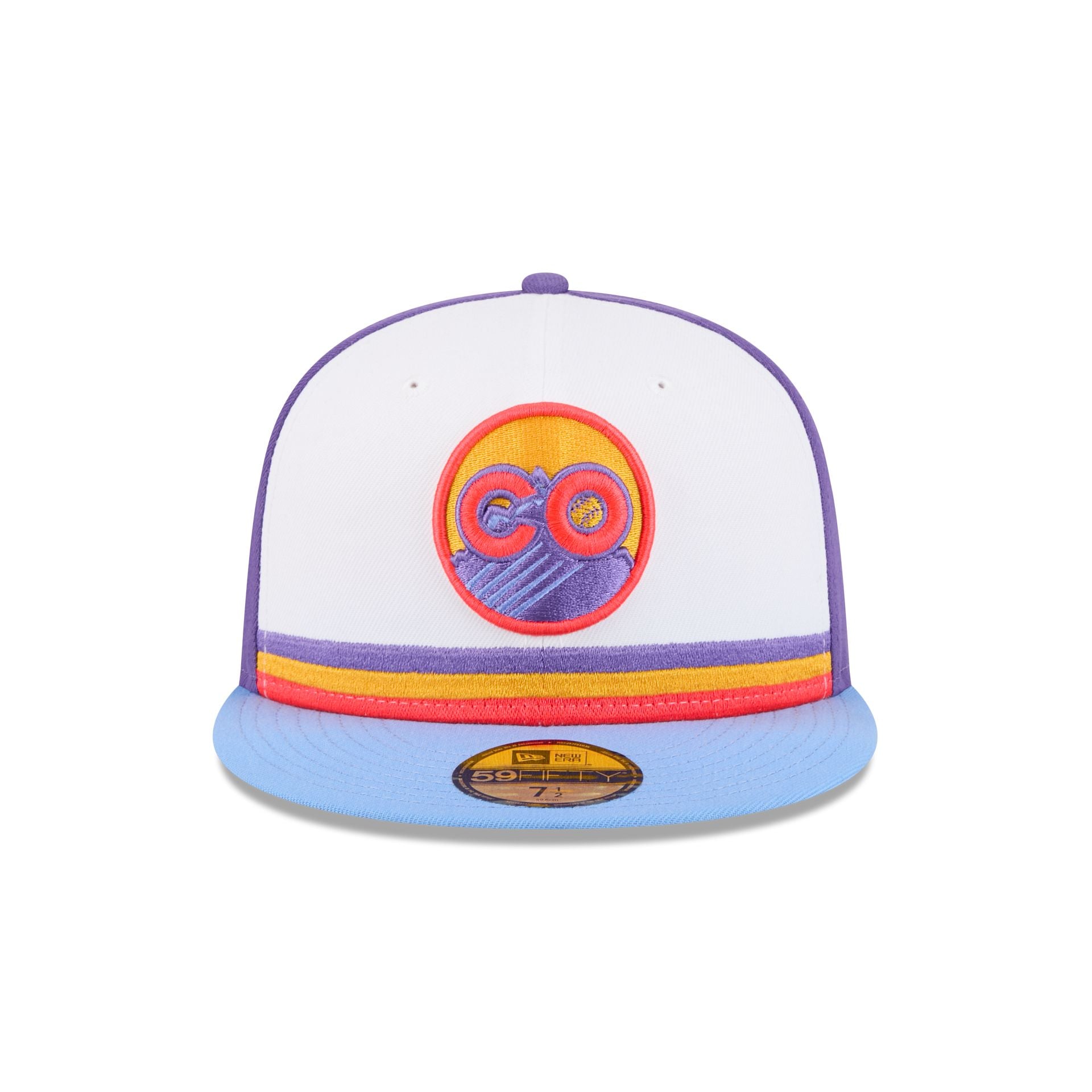 The Colorado Rockies City Connect Fan Pack 59FIFTY Fitted Cap features an embroidered Rockies logo at the front panels with a matching MLB Batterman logo at the rear.