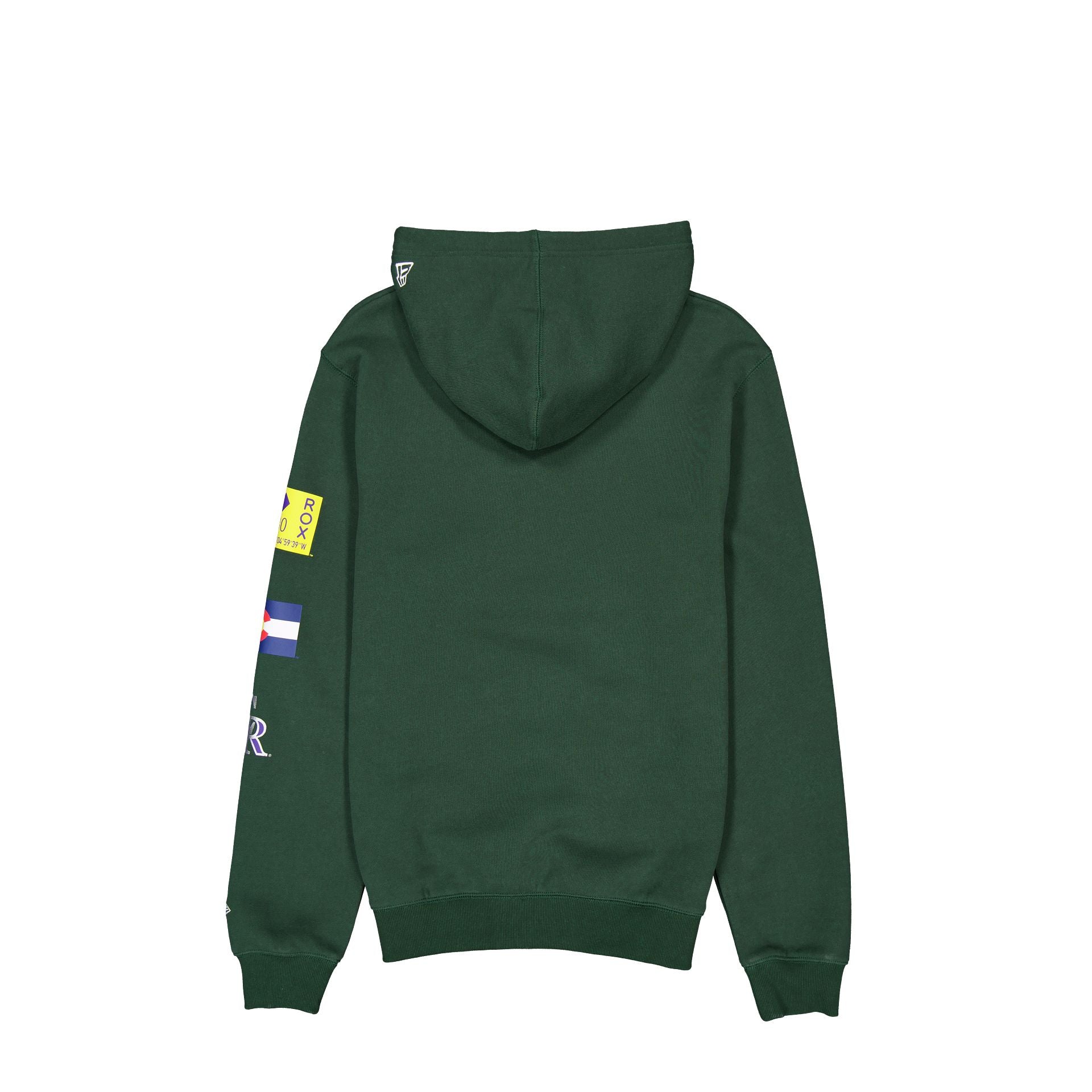 Jersey inspired. city connected. The Colorado Rockies City Connect Green Hoodie features a screen-printed Rockies logos at the front with alternate team logos at the left-wear sleeve.
