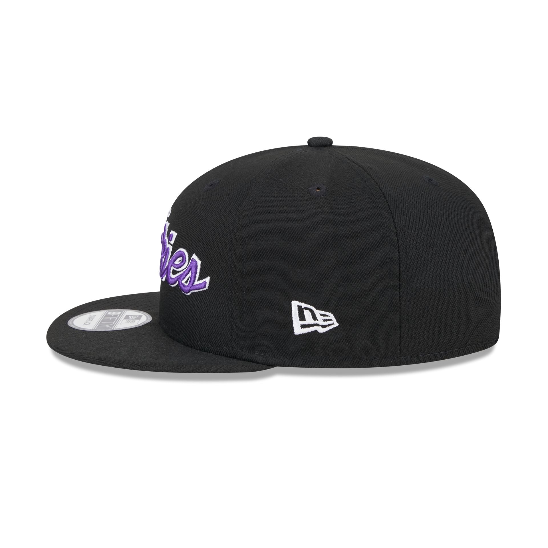 The Colorado Rockies Wordmark 9FIFTY Snapback features an embroidered Rockies wordmark at the front panels with a matching team logo at the right-wear side. a gray undervisor. and a snapback closure at the rear.