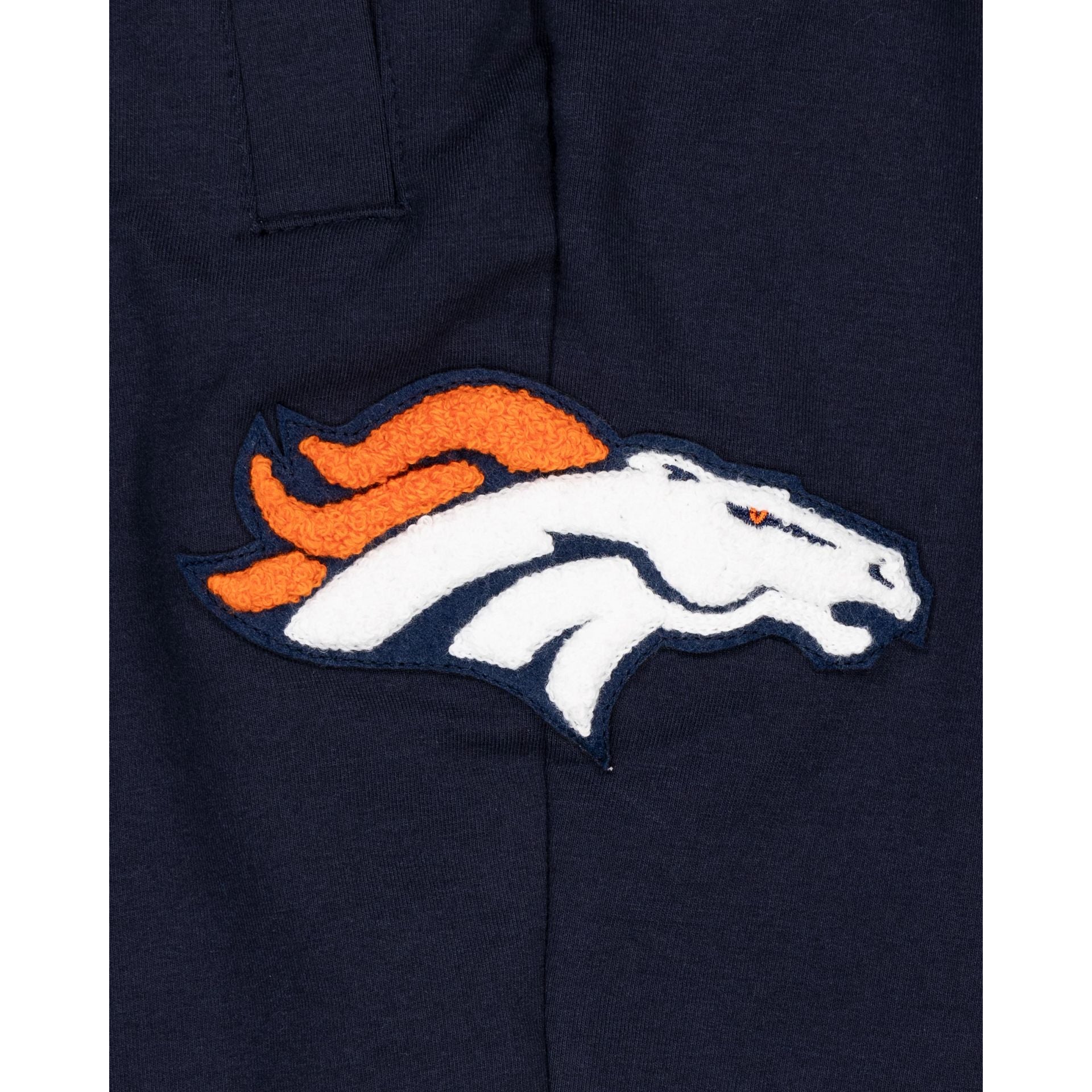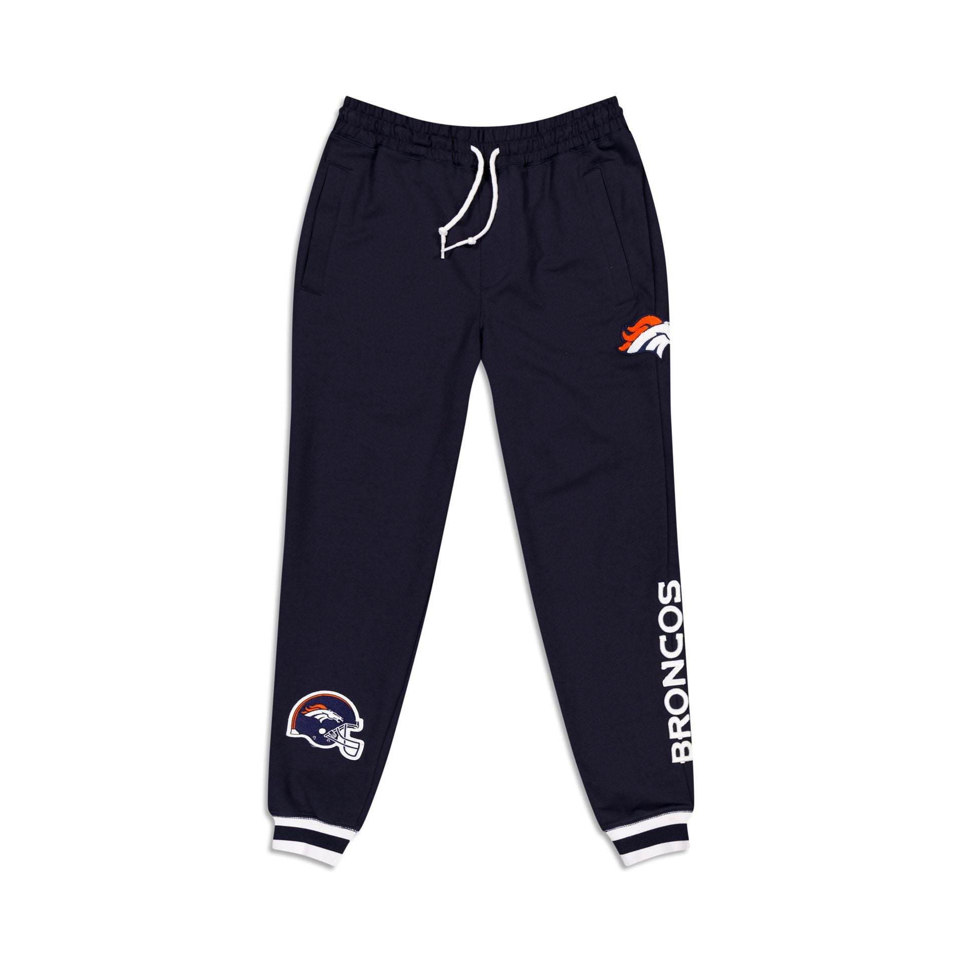 The Denver Broncos Logo Select Jogger features a chenille applique Broncos logo and embroidered wordmark at the left leg with an alternate team logo at the right ankle.