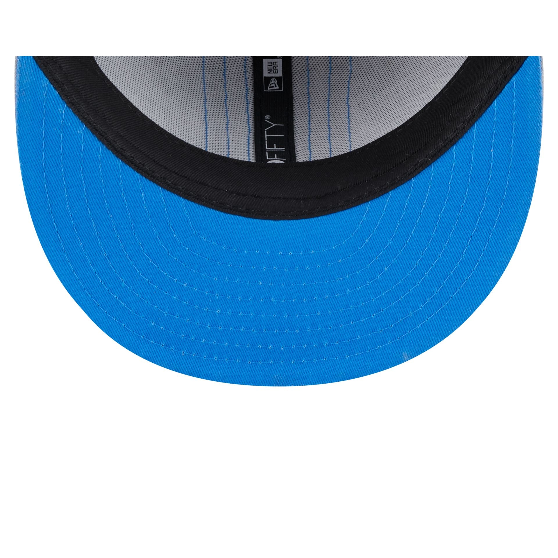 The Detroit Lions Kids Helmet 9FIFTY Snapback features an embroidered Lions helmet design throughout the hat with a team tag on a snapback closure at the rear.