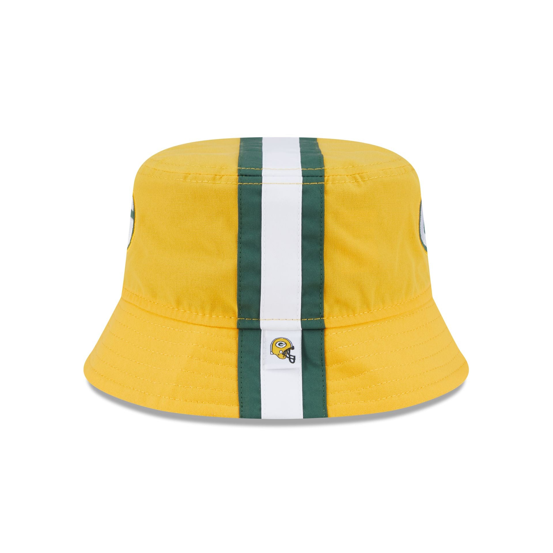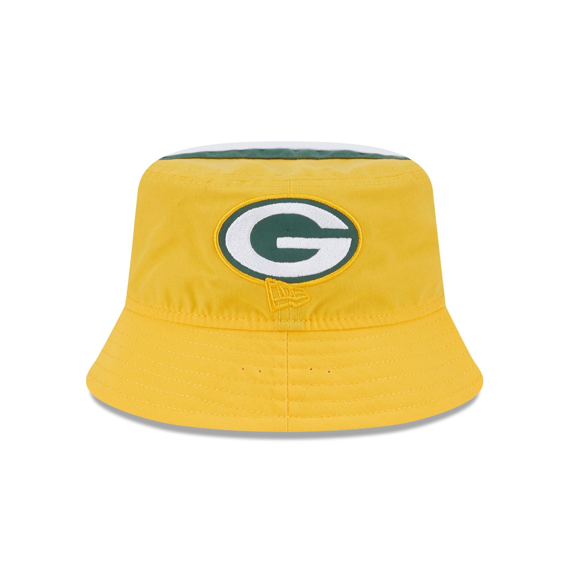The Green Bay Packers Kids Helmet Bucket Hat features an embroidered team helmet design throughout the hat with a team tag at the rear.