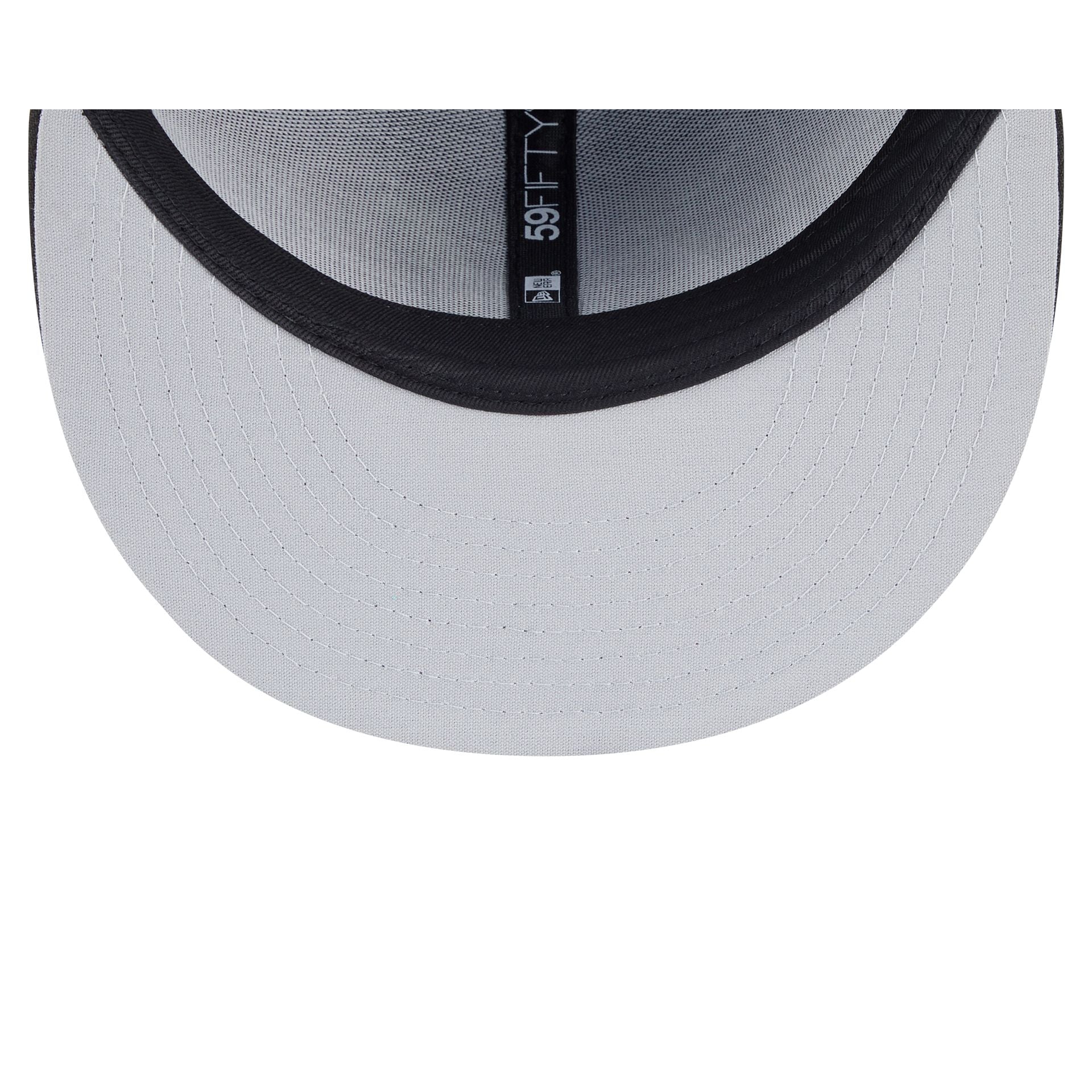 The Harrisburg Senators Theme Night Black 59FIFTY Fitted Cap features an embroidered Senators theme night logo at the front panels with a matching MiLB Batterman logo at the rear and a gray undervisor.