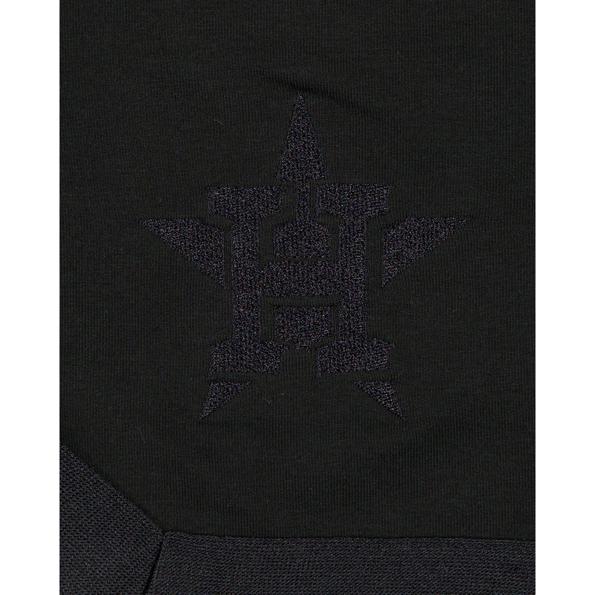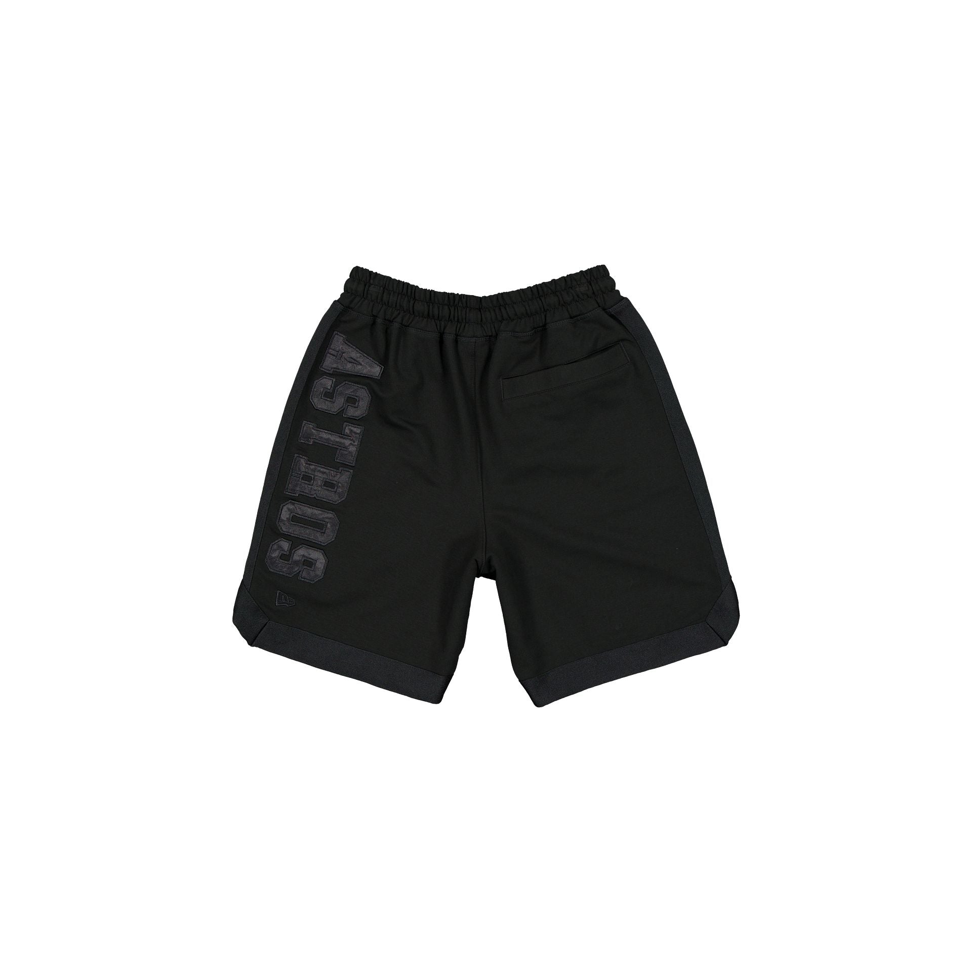 The Houston Astros Black on Black Logo Select Shorts features an embroidered Astros logo at the right-wear leg and a satin applique with a tonal stitch team wordmark at the rear left leg.