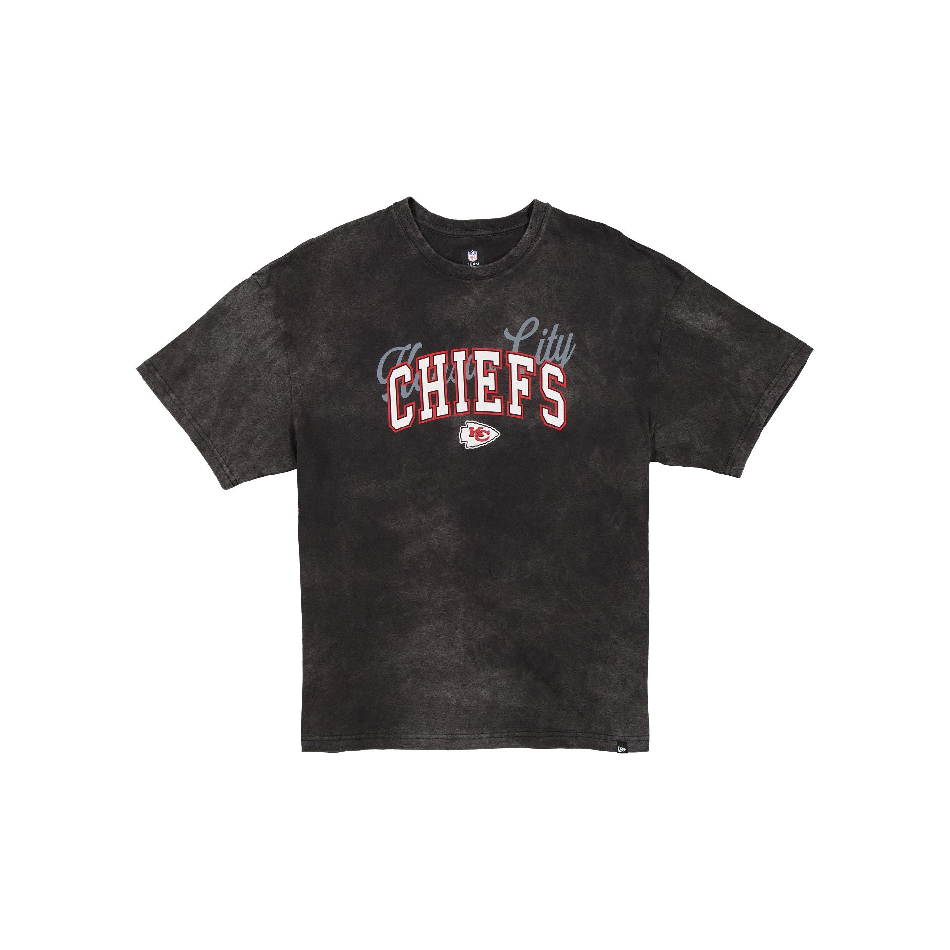 The Kansas City Chiefs Women’s Oversized Washed Black T-Shirt features a screen-printed Chiefs graphic at the front with a washed fabrication.