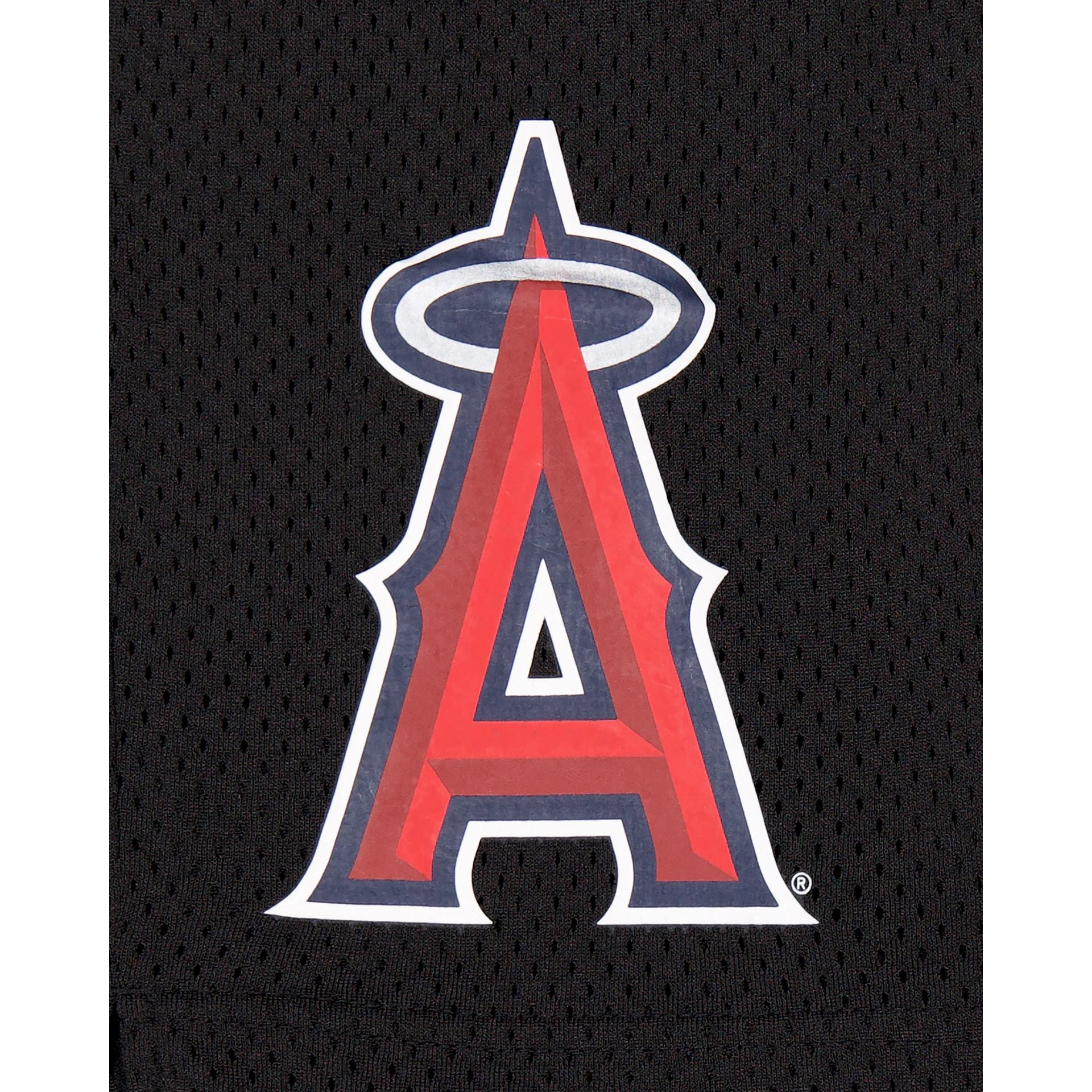 The Los Angeles Angels Mesh Shorts features a screen-printed Angels logo at the left leg with a team wordmark at the right leg.
