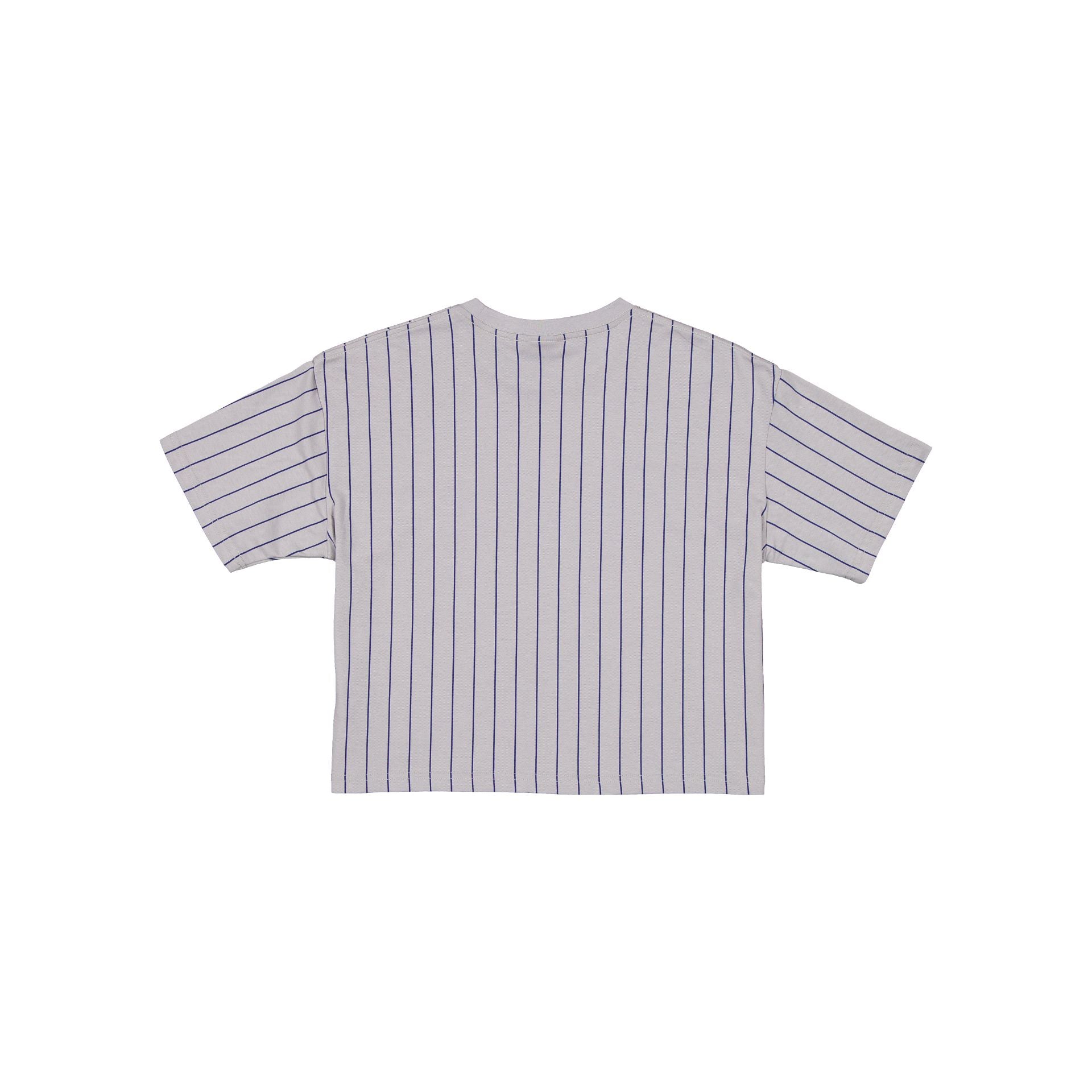 The Los Angeles Dodgers Throwback Women’s Pinstripe T-Shirt features a screen-printed Dodgers wordmark and logo at the front with a New Era jock tag at the left hip.