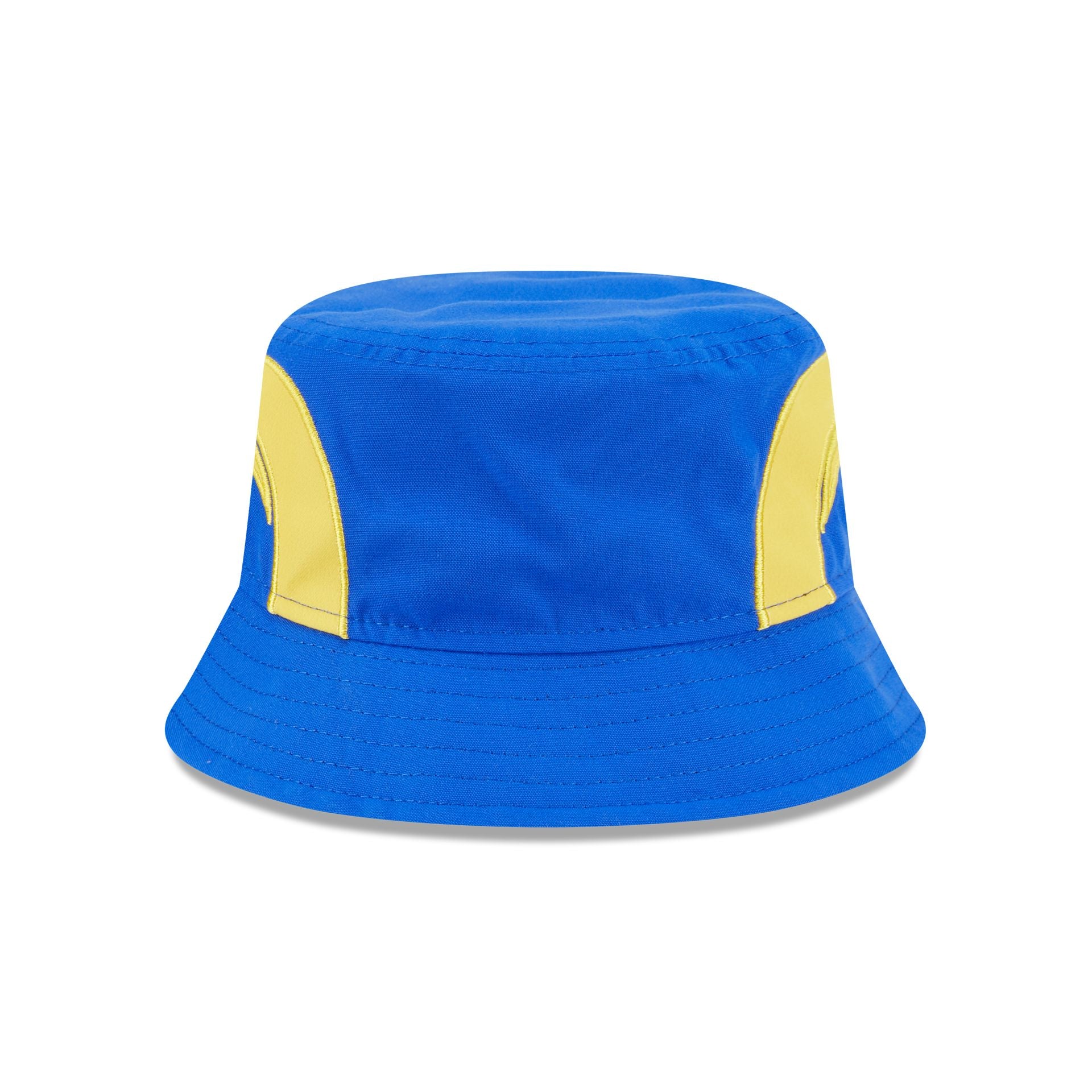 The Los Angeles Rams Kids Helmet Bucket Hat features an embroidered team helmet design throughout the hat with a team tag at the rear.