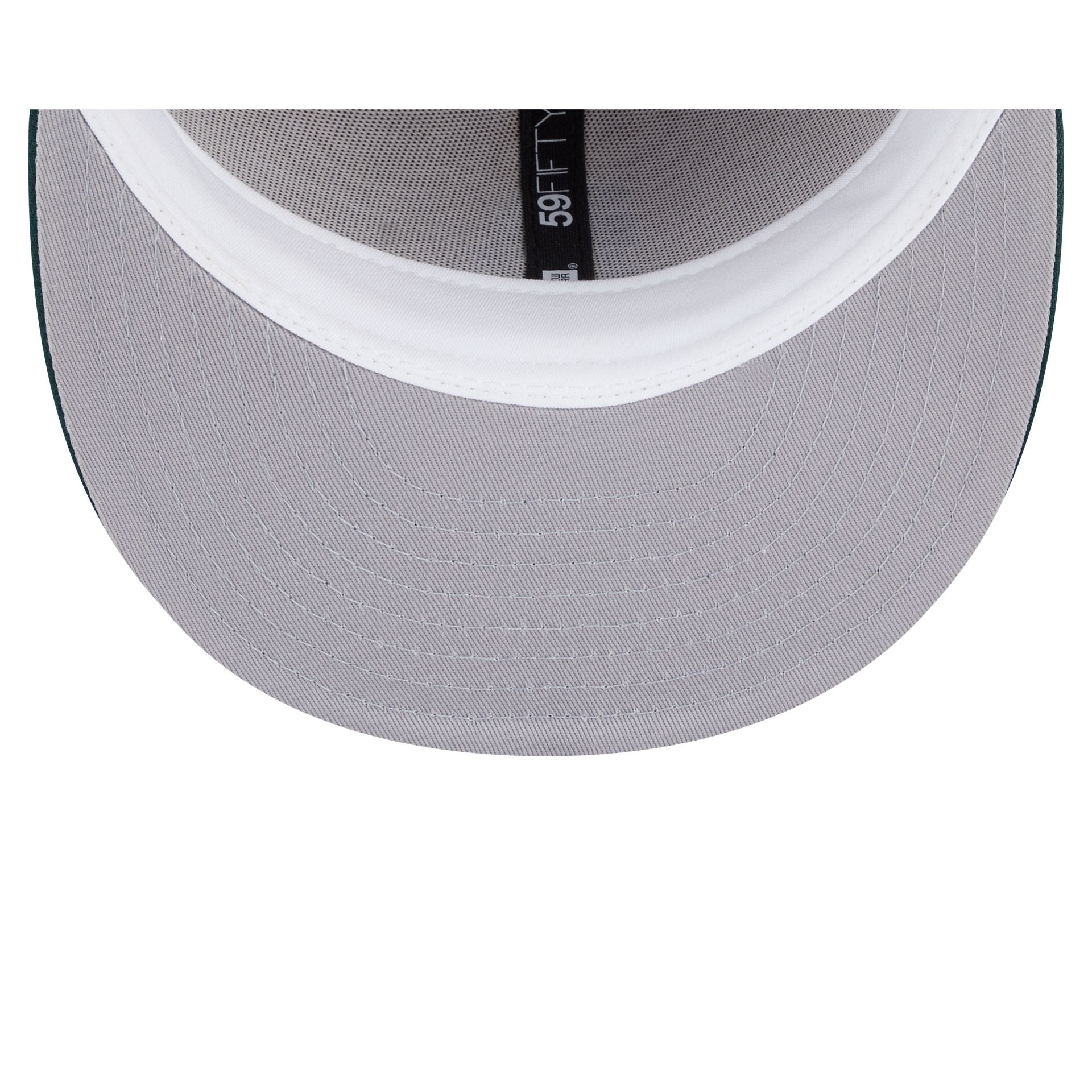 The Michigan State Spartans Camel College Vault 59FIFTY Fitted Cap features an embroidered Spartans logo at the front panels with a matching team wordmark at the rear and a gray undervisor.