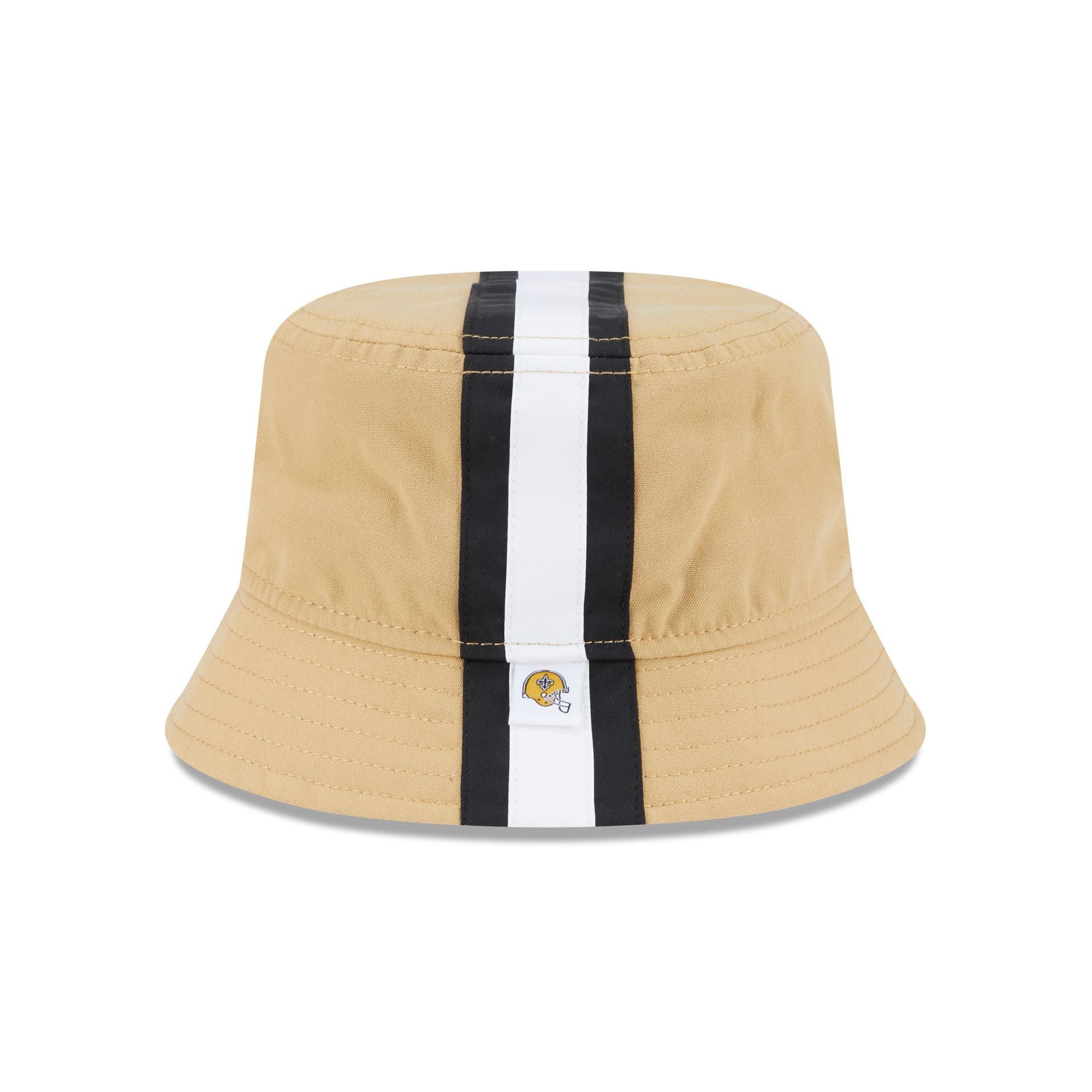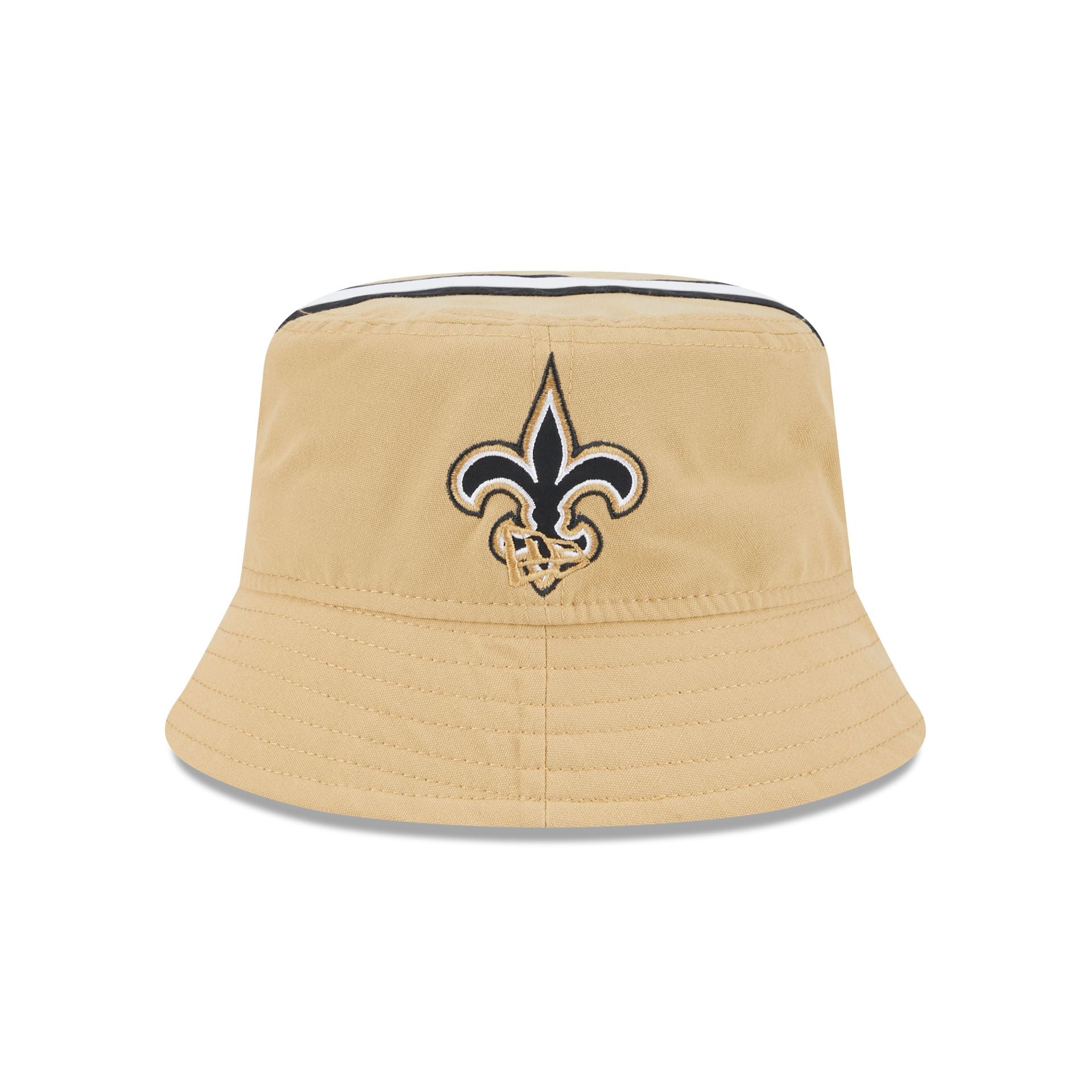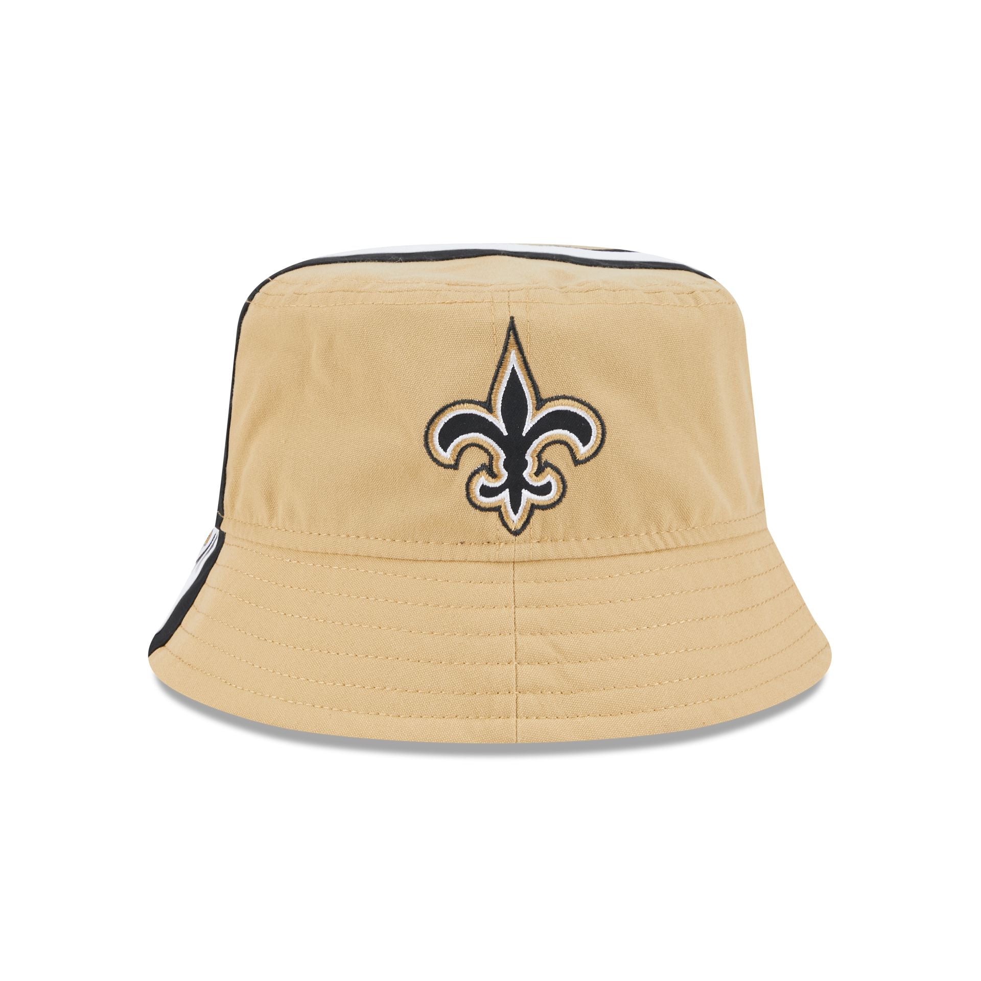 The New Orleans Saints Kids Helmet Bucket Hat features an embroidered team helmet design throughout the hat with a team tag at the rear.