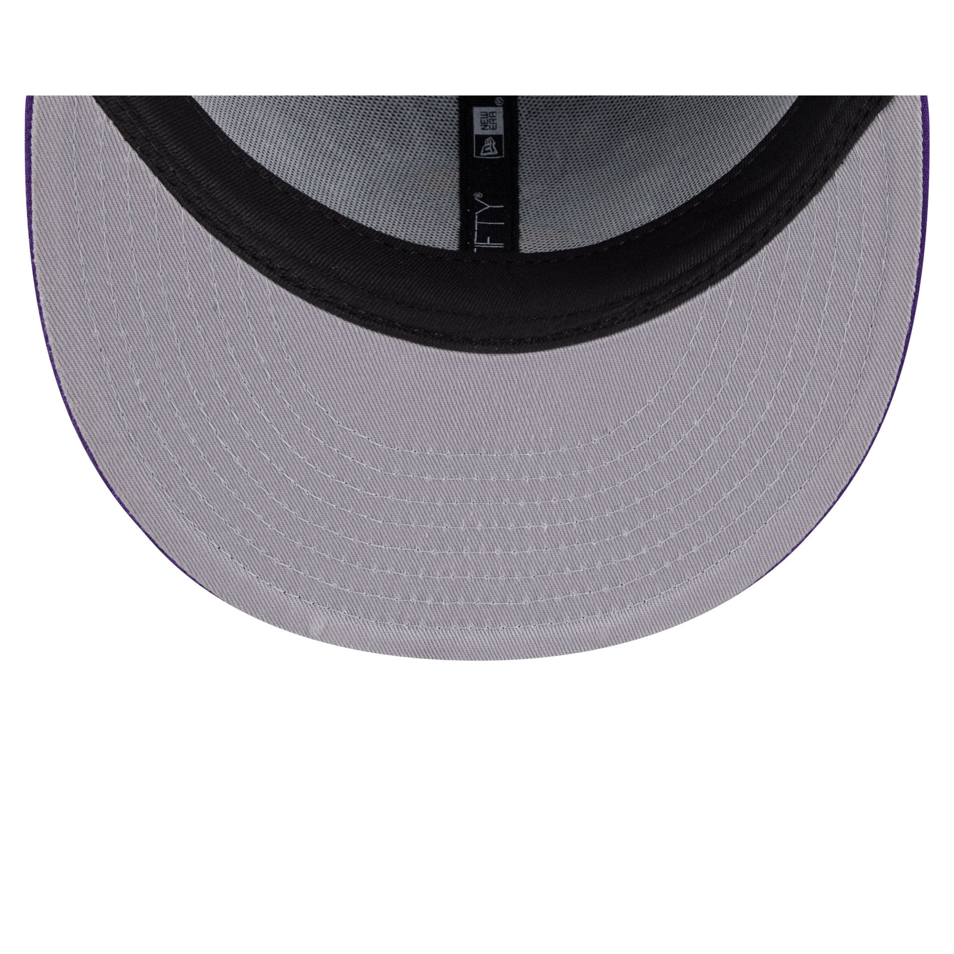 The Nickelodeon Slime x Minnesota Vikings 59FIFTY Fitted Cap features an embroidered Vikings slime logo at the front panels with a monochromatic black logo at the rear and a gray undervisor.