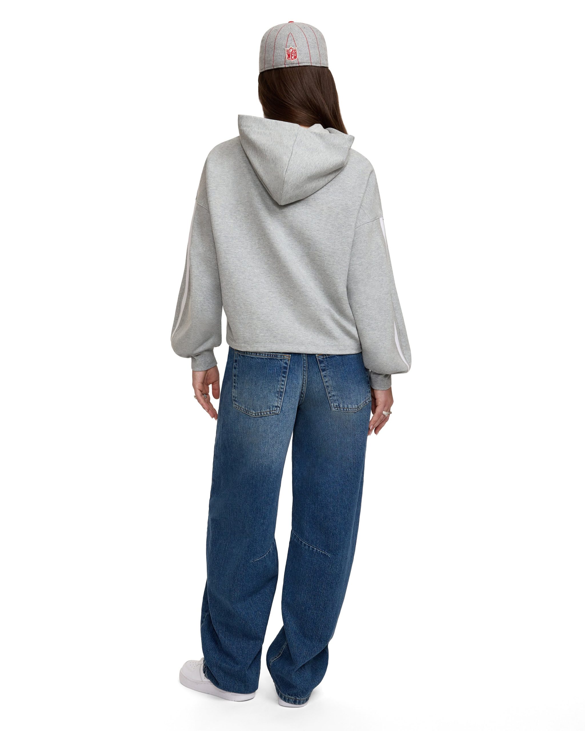 The Philadelphia Eagles Gray Logo Select Women’s Hoodie features an embroidered Eagles wordmark at the front panels with a drawstring closure at the hem.
