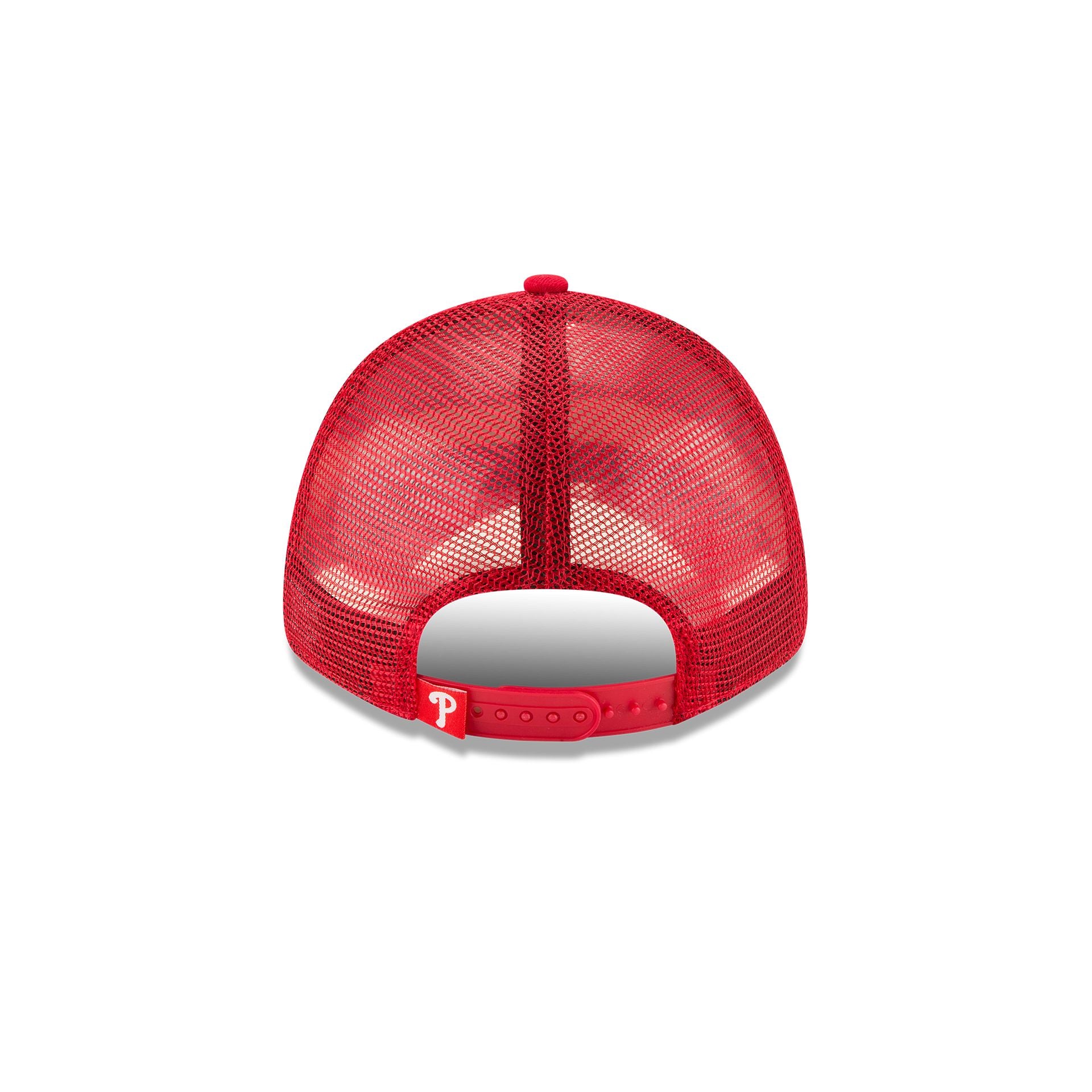 The Philadelphia Phillies 9FORTY Trucker features an embroidered Phillies at the front panels with a woven tab displaying the team logo and a snapback closure at the rear.