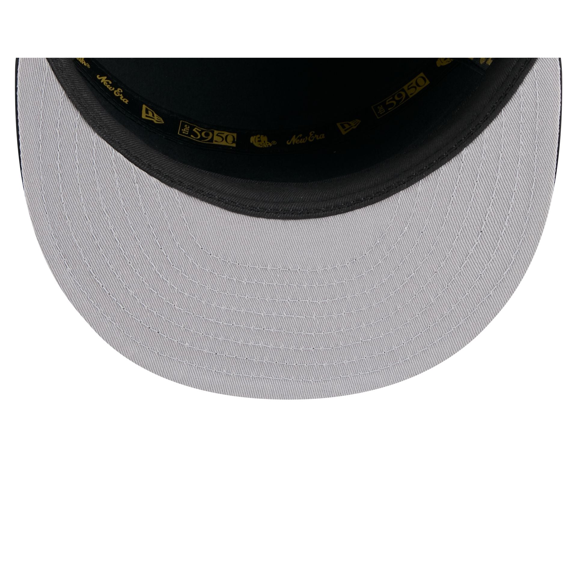 The San Francisco 49ers Black Poly Rope 59FIFTY Split Panel Fitted Cap features a woven 49ers logo at the front panels with a matching NFL Shield logo embroidered at the rear. Additional details include a rope at the visor and a gray undervisor.