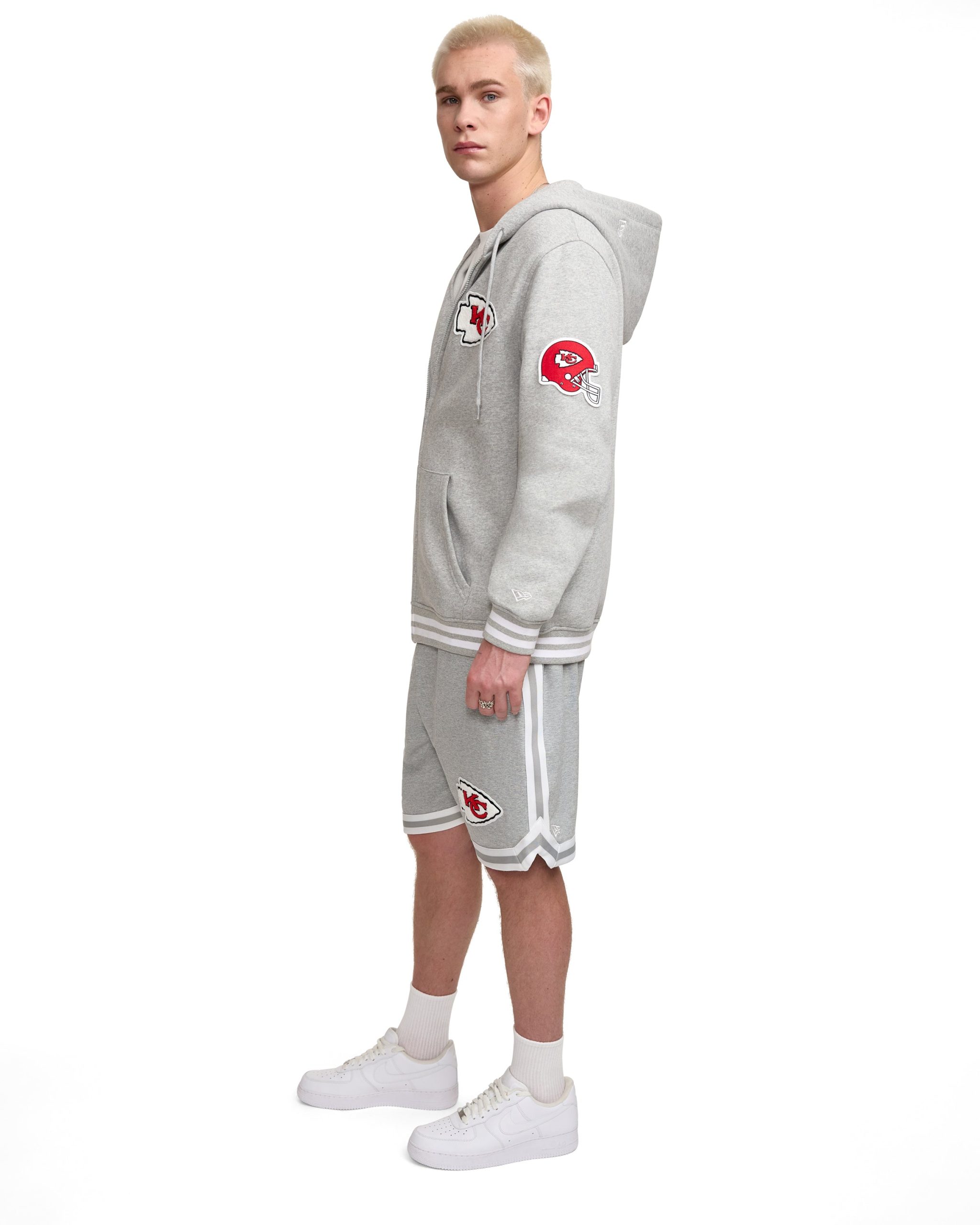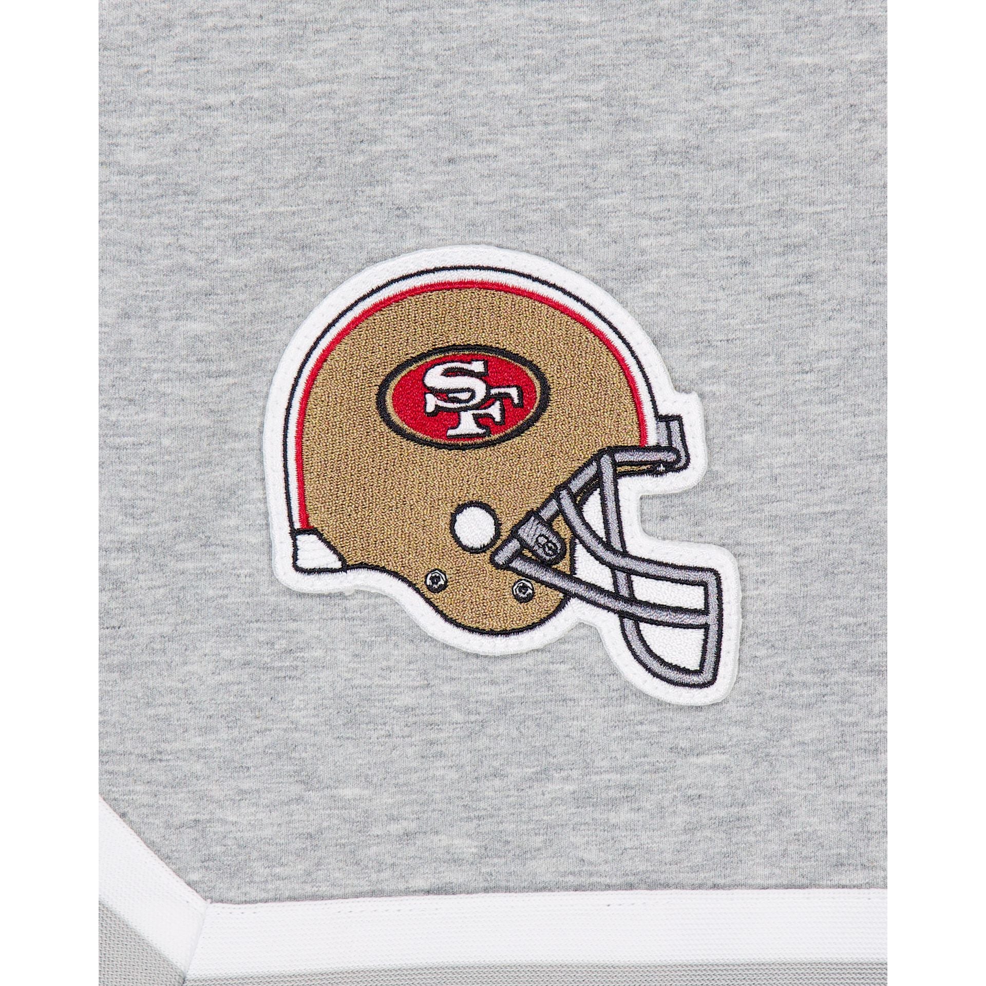The San Francisco 49ers Gray Logo Select Shorts features a chenille applique 49ers logo at the left leg with an alternate team logo patch embroidered at the right leg.