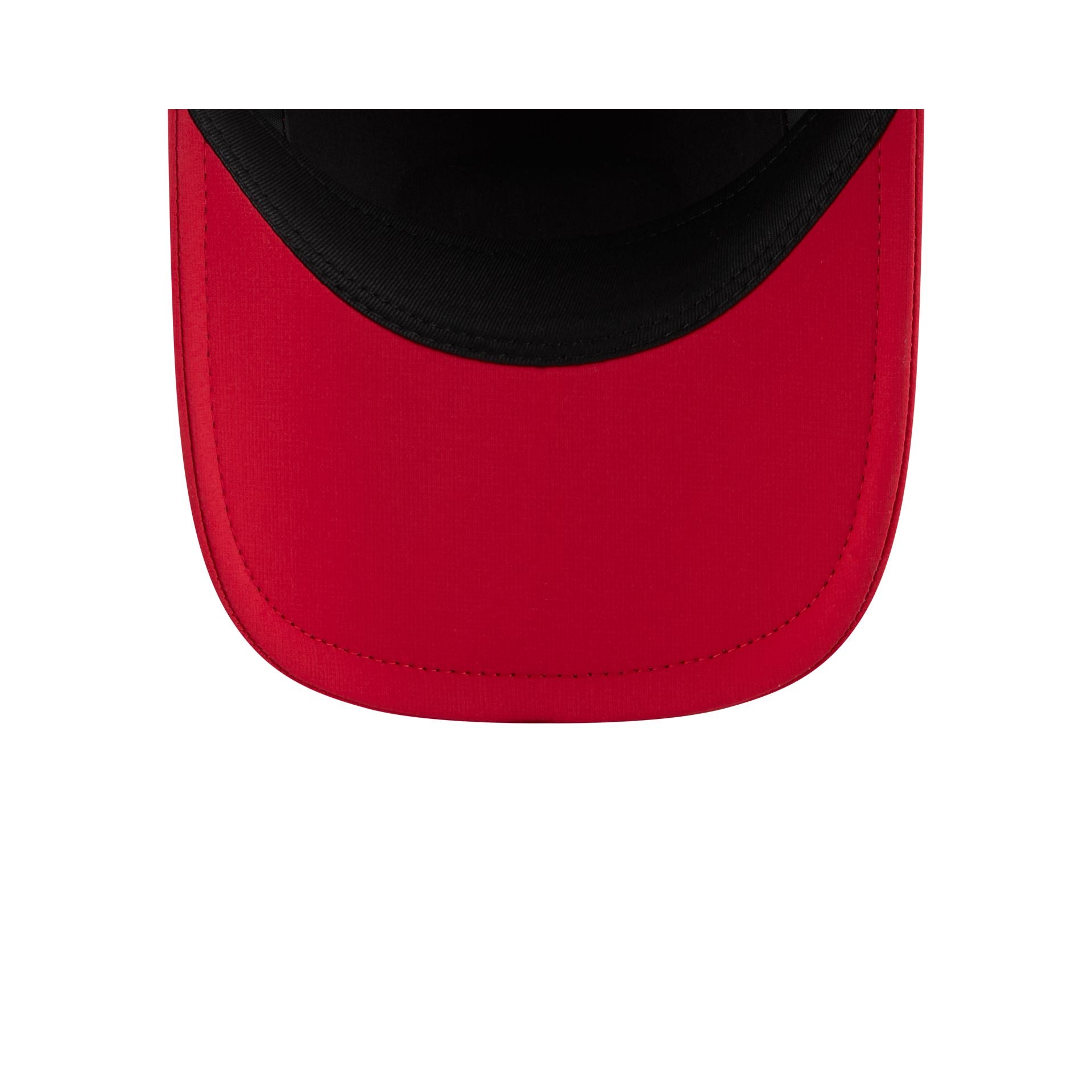 The San Francisco 49ers Poly Runner Cap features a heat sealed 49ers logo at the front panels with mesh side panels. Additional details include a silicone patch above an adjustable drawstring closure at the rear.