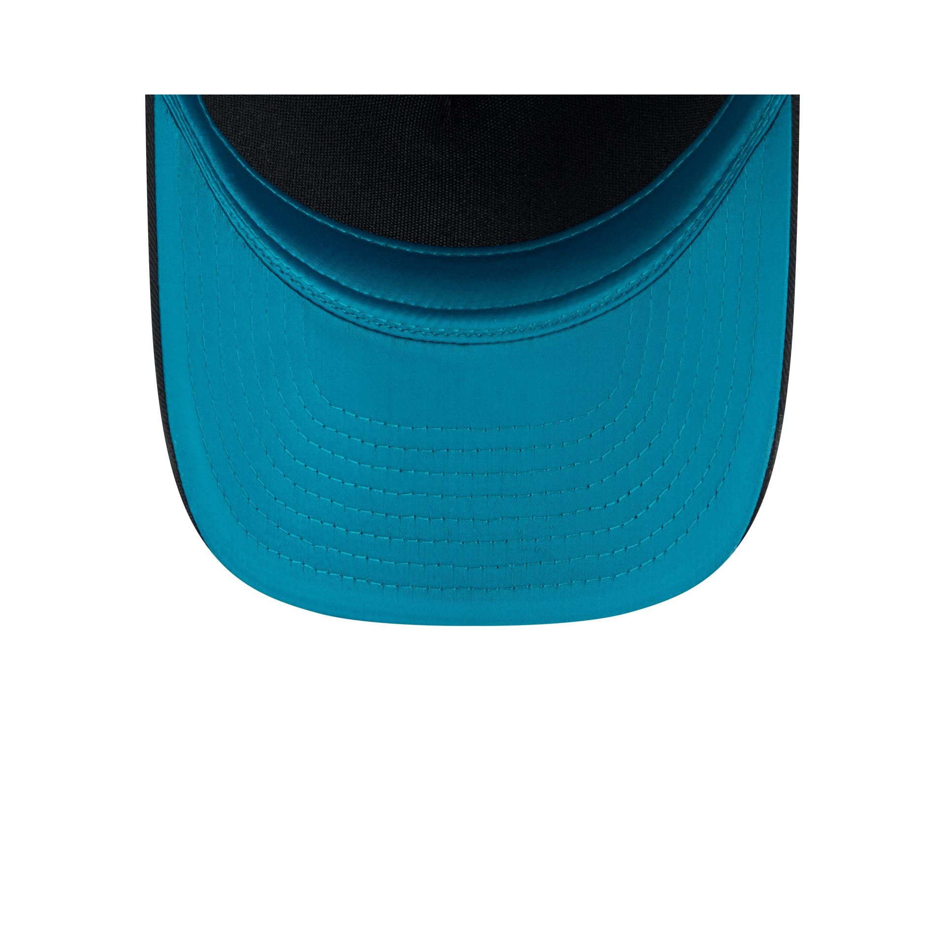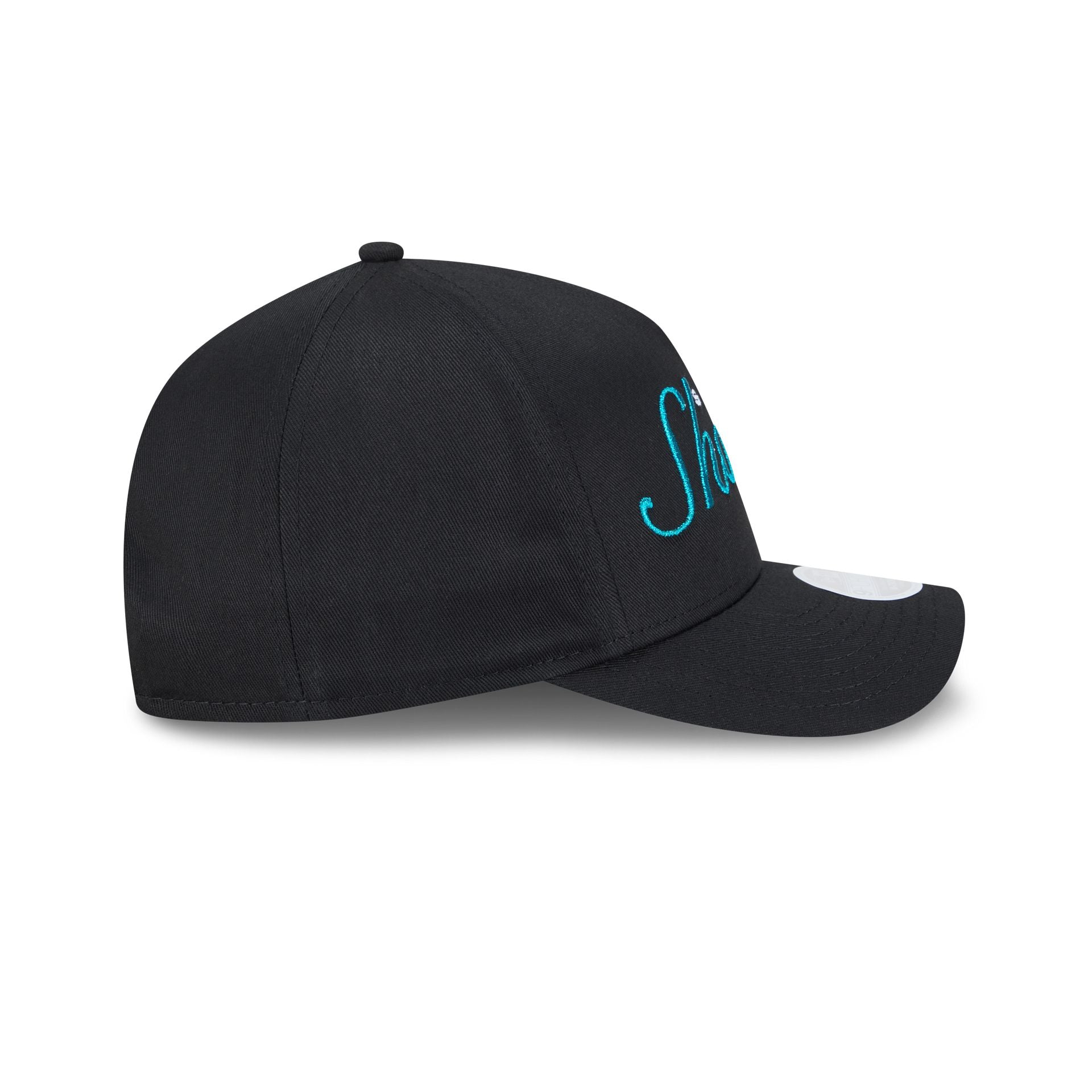The San Jose Sharks Metallic Women’s 9FORTY M-Crown A-Frame Snapback features an embroidered Sharks metallic script wordmark at the front panel with a snapback closure at the rear and a satin undervisor.