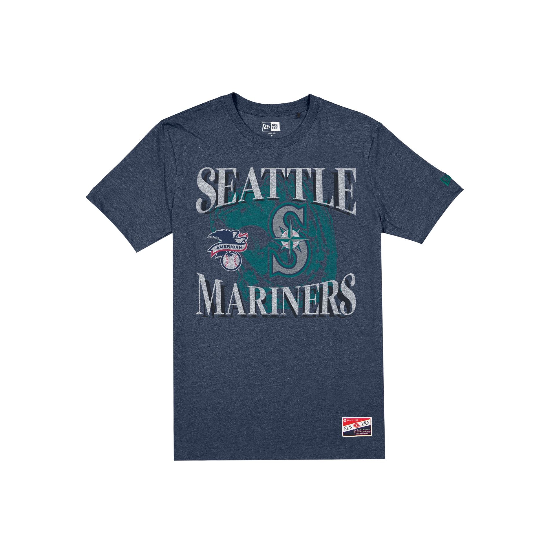 The Seattle Mariners Throwback Statement T-Shirt features a screen-printed Mariners graphic at the front.