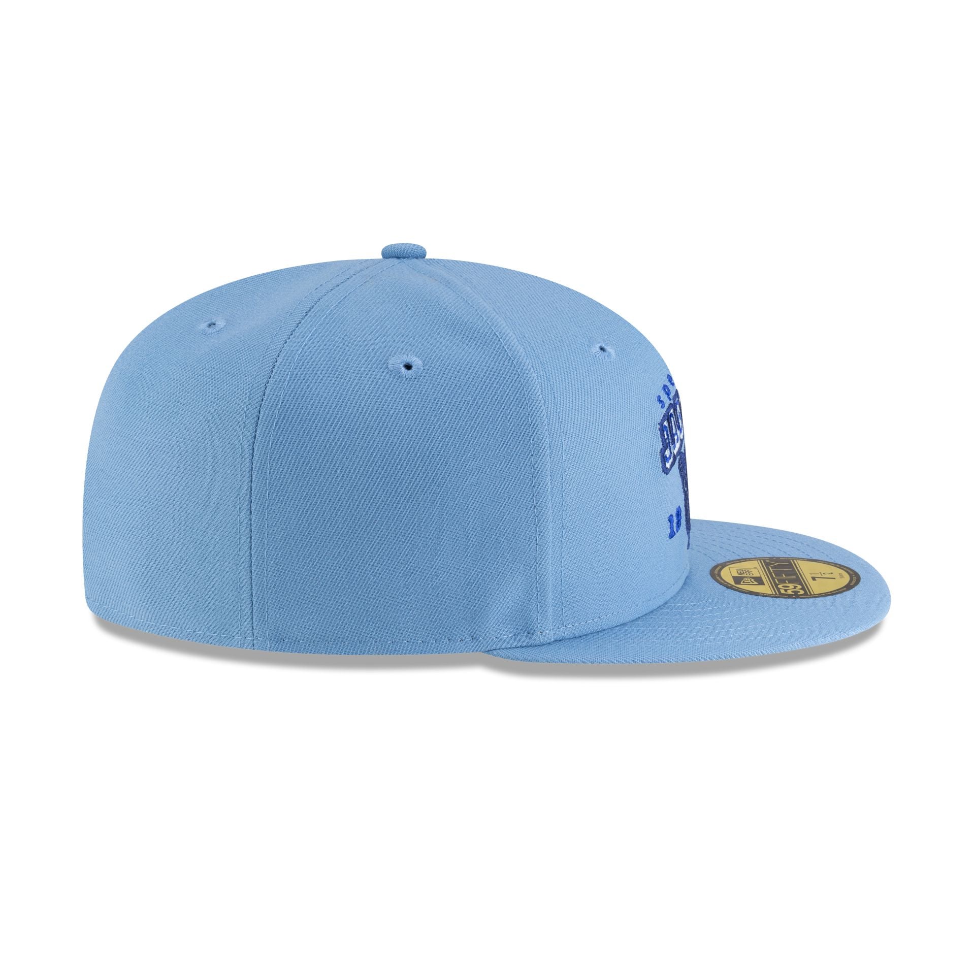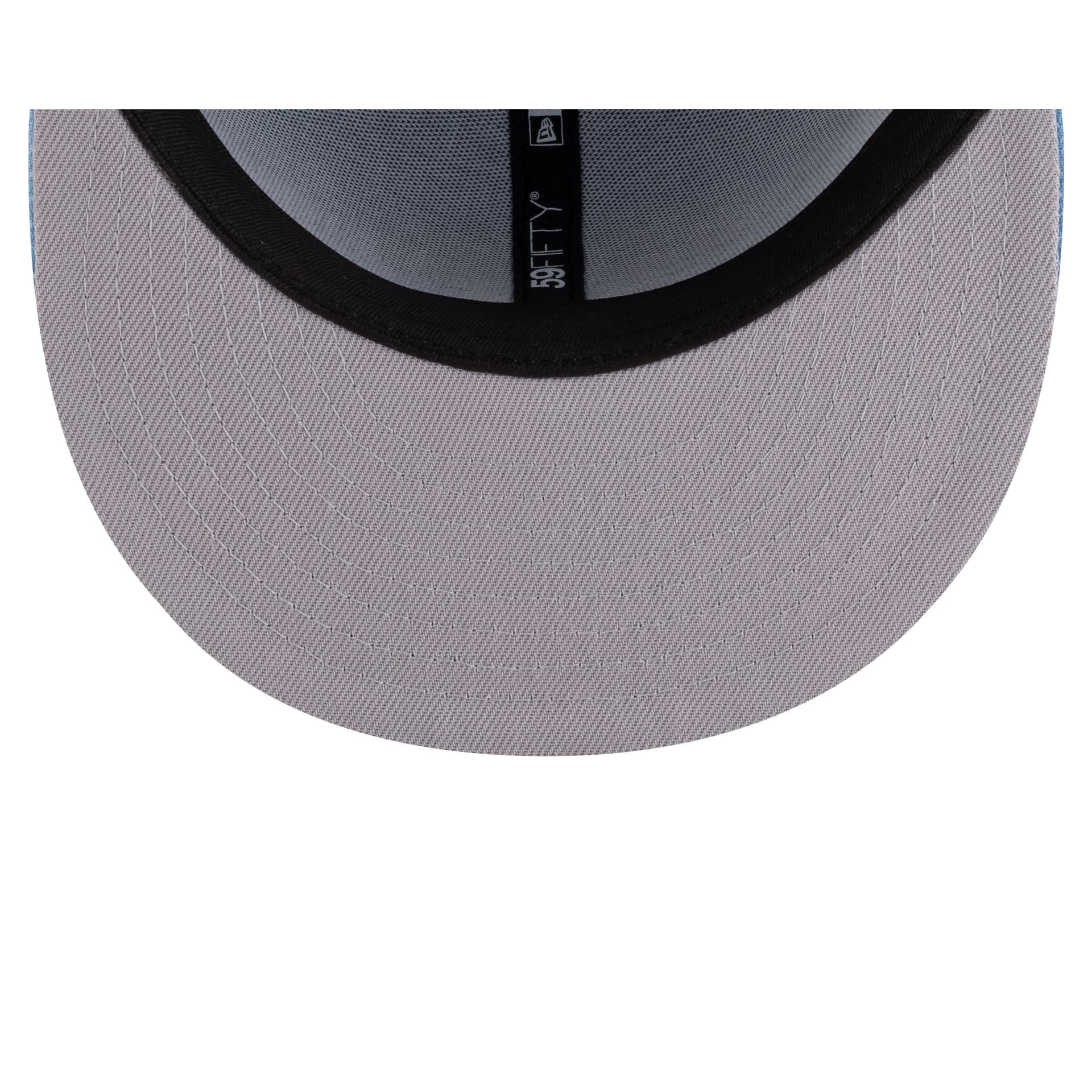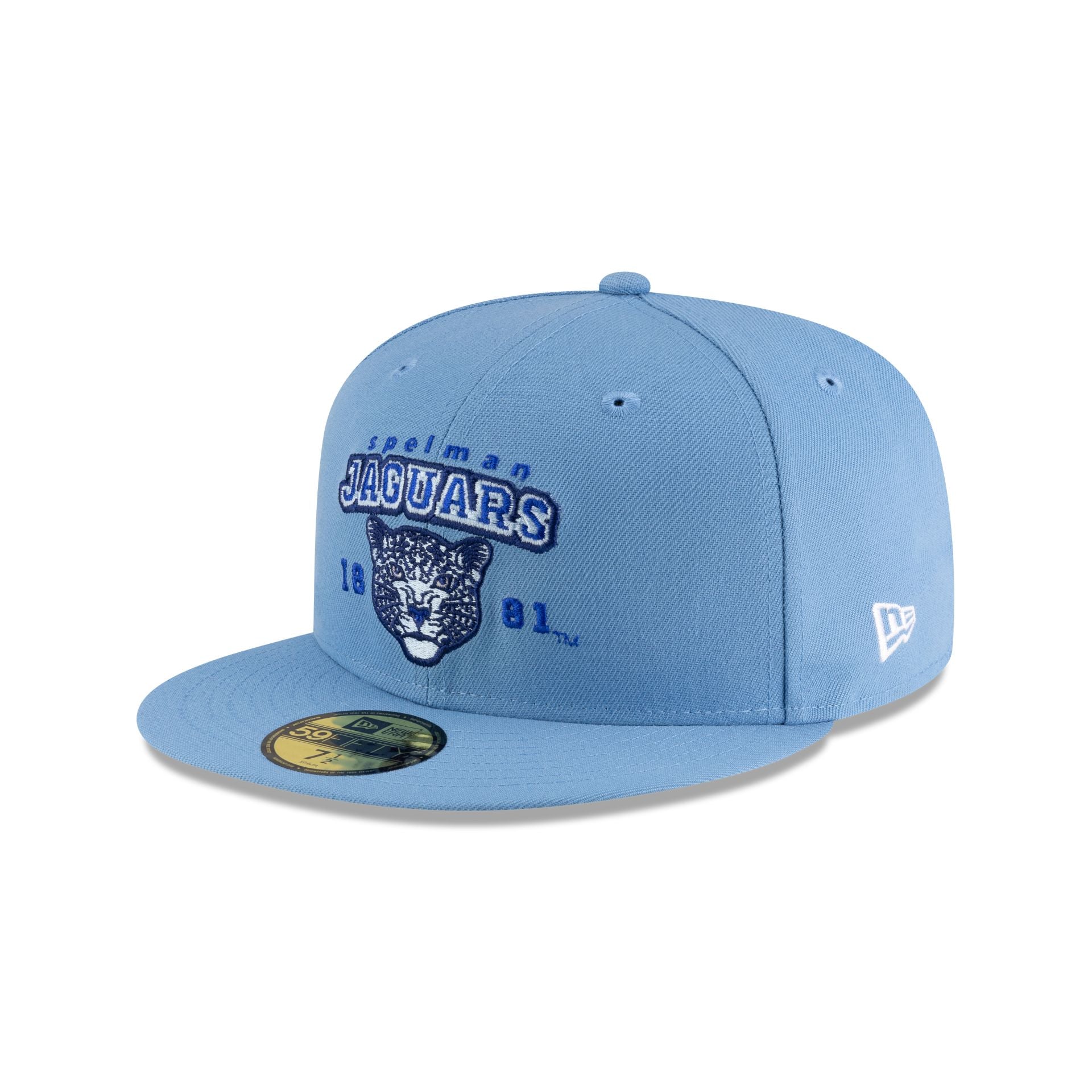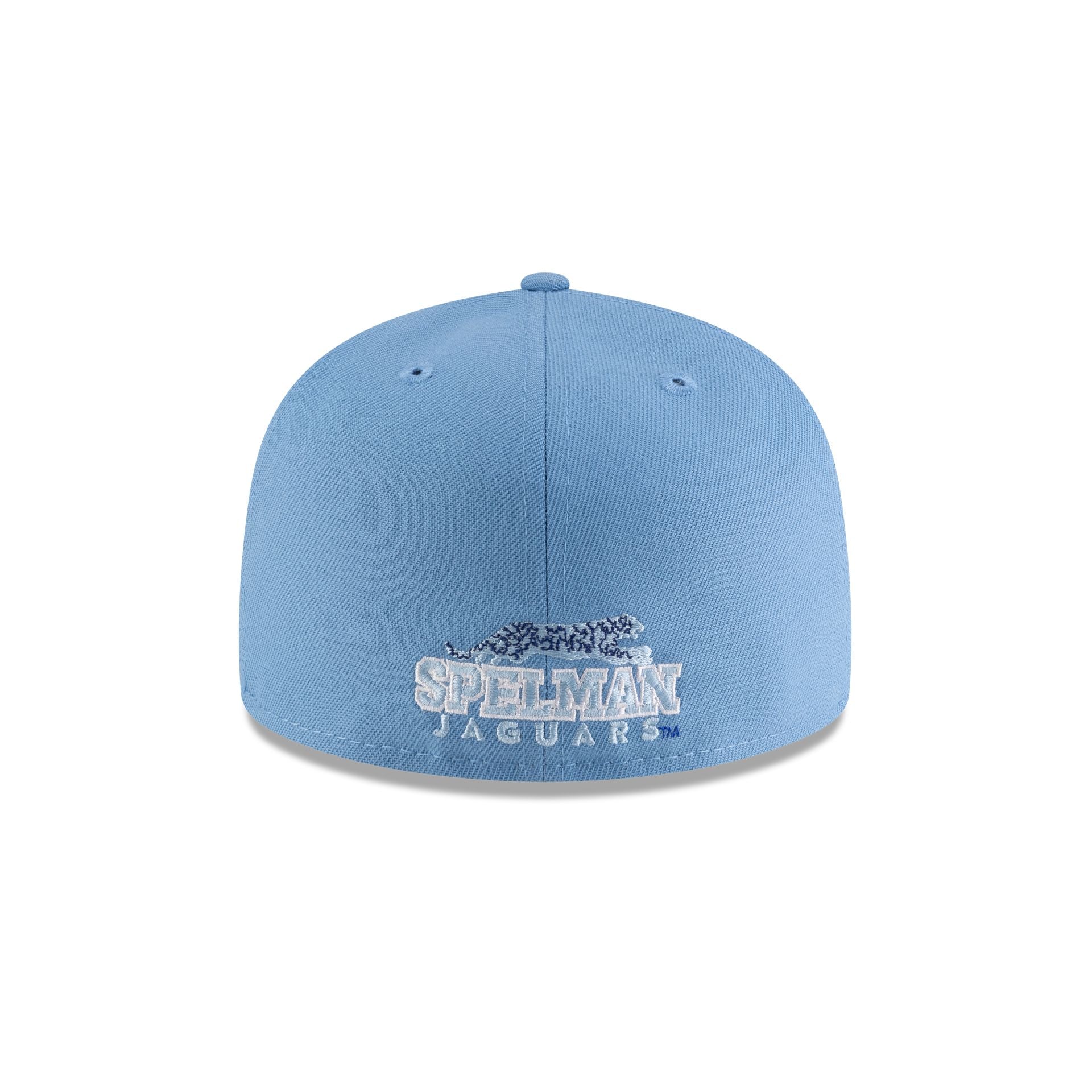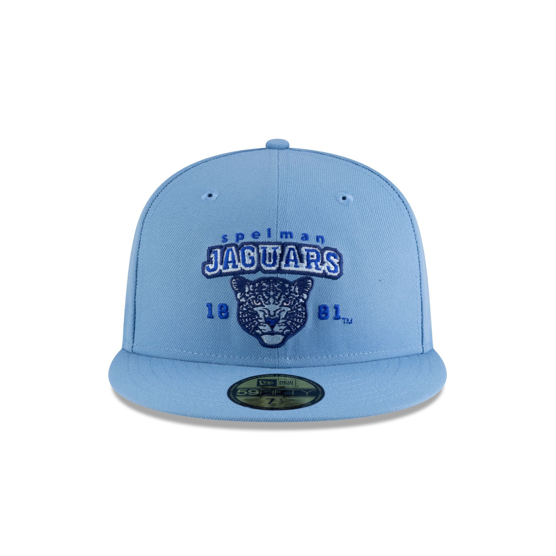 The Spelman Jaguars Sky Blue 59FIFTY Fitted Cap features an embroidered Jaguars logo at the front panels with a team wordmark at the rear and a gray undervisor.