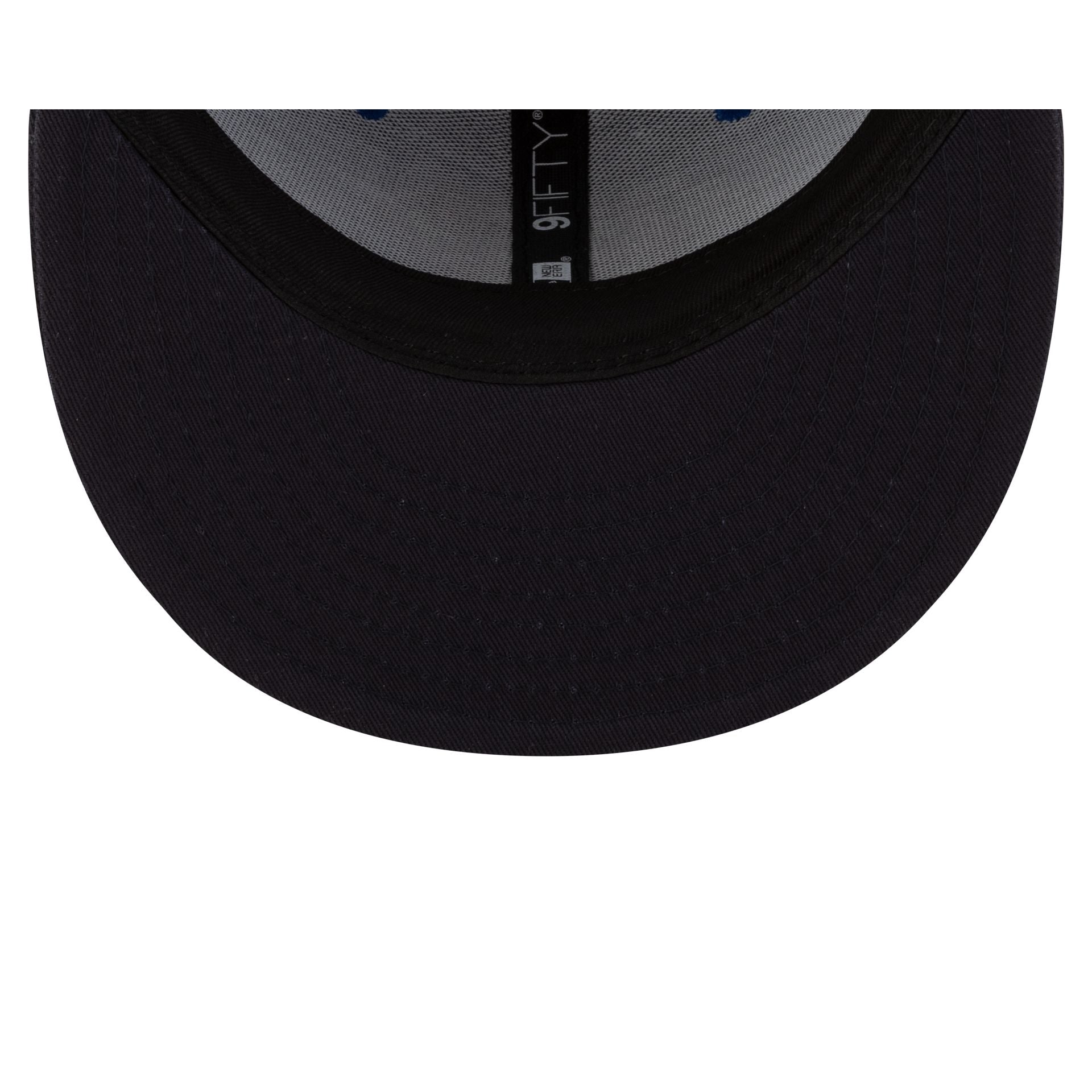 The Superman Blue Kids 9FIFTY Snapback features an embroidered Superman logo at the front panels with a comic allover print crown. a snapback closure at the rear. and a black undervisor.
