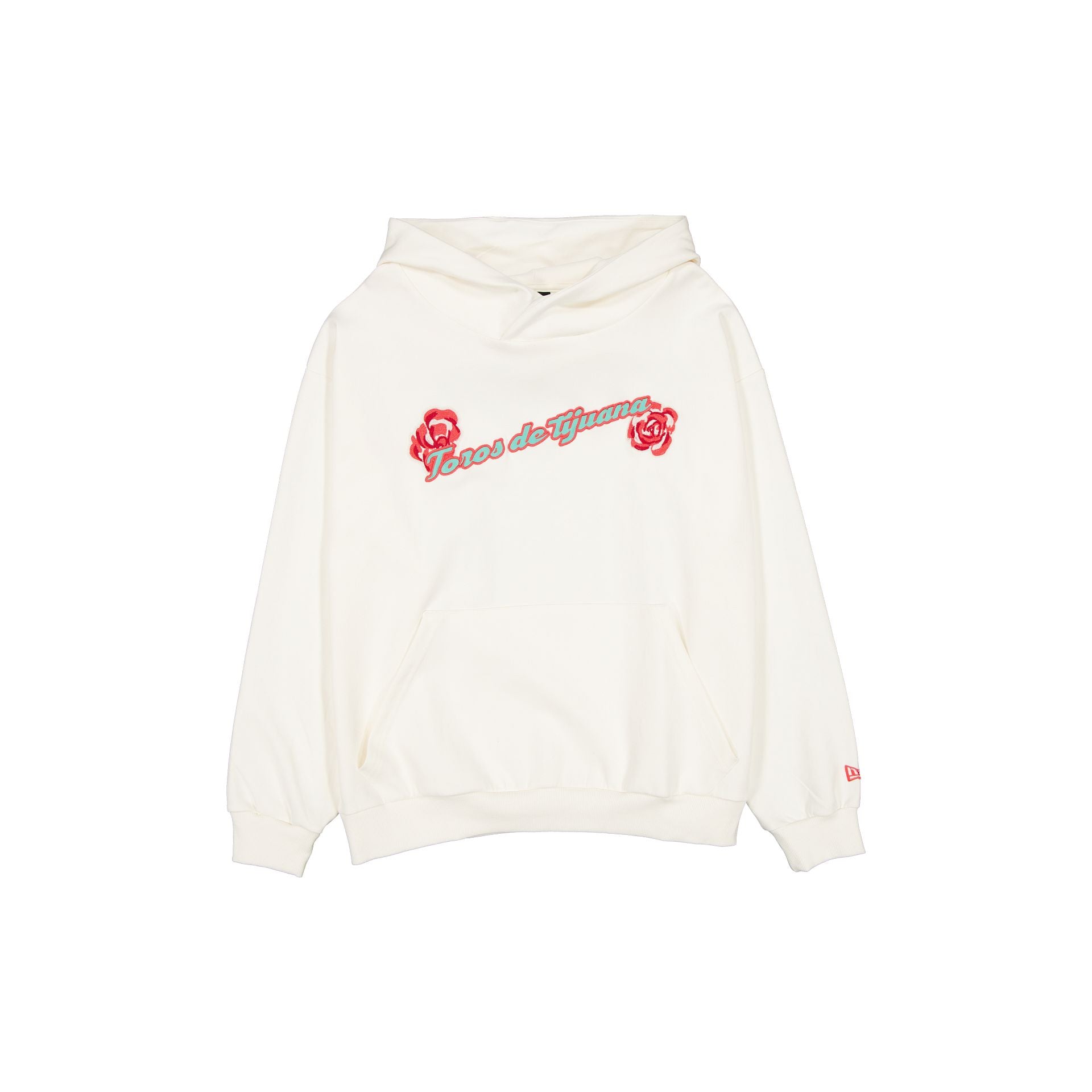 The Toros de Tijuana Stone Floral Hoodie features an embroidered Toros floral wordmark at the front with a screen-printed floral logo at the rear. Additional details include kangaroo pockets and adjustable drawstring at the hood.